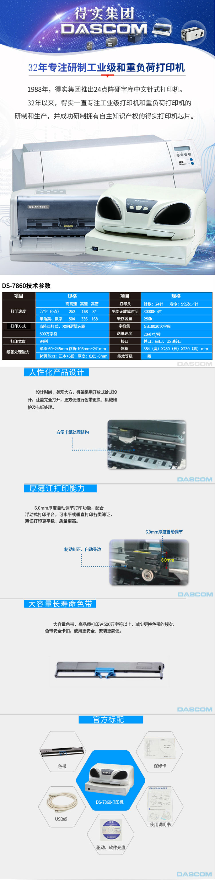 商品名称:得实(Dascom)DS-7860 94列厚簿证/新型存折打印机 医院电子病历打印机 出生证 接种卡打印机