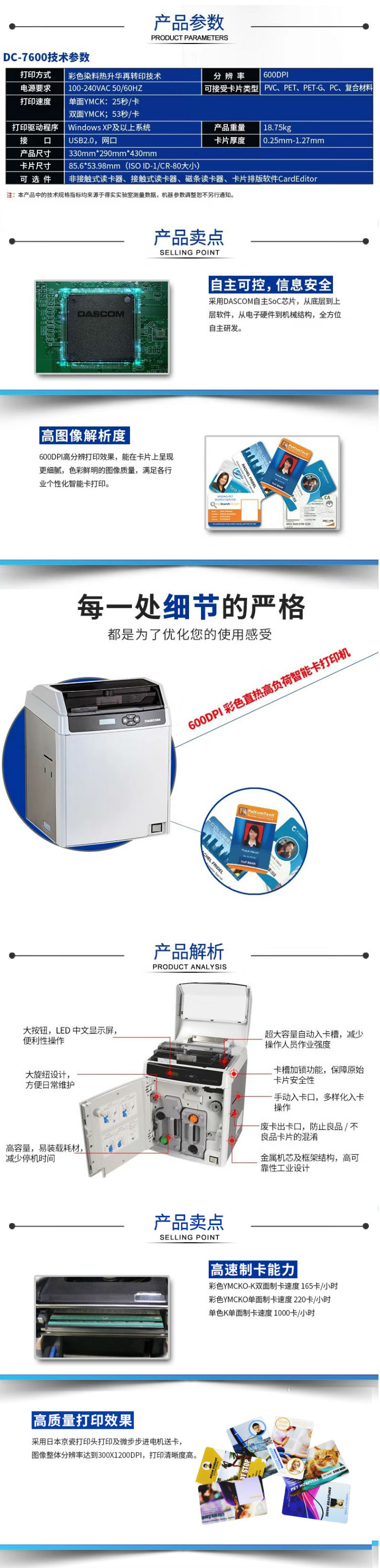 商品名称:得实(Dascom)DC-7600 600dpi彩色再转印重负荷智能卡打印机