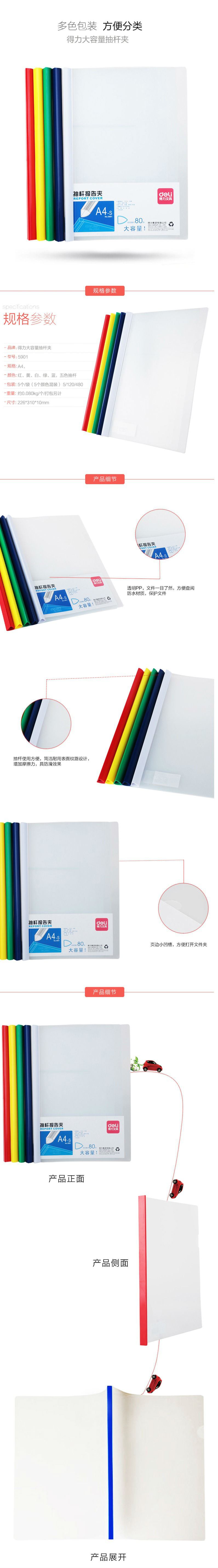 商品名称:得力(deli)A4透明抽杆夹 办公拉杆夹文件夹资料夹可放约80张 5901 颜色随机(单位:个)