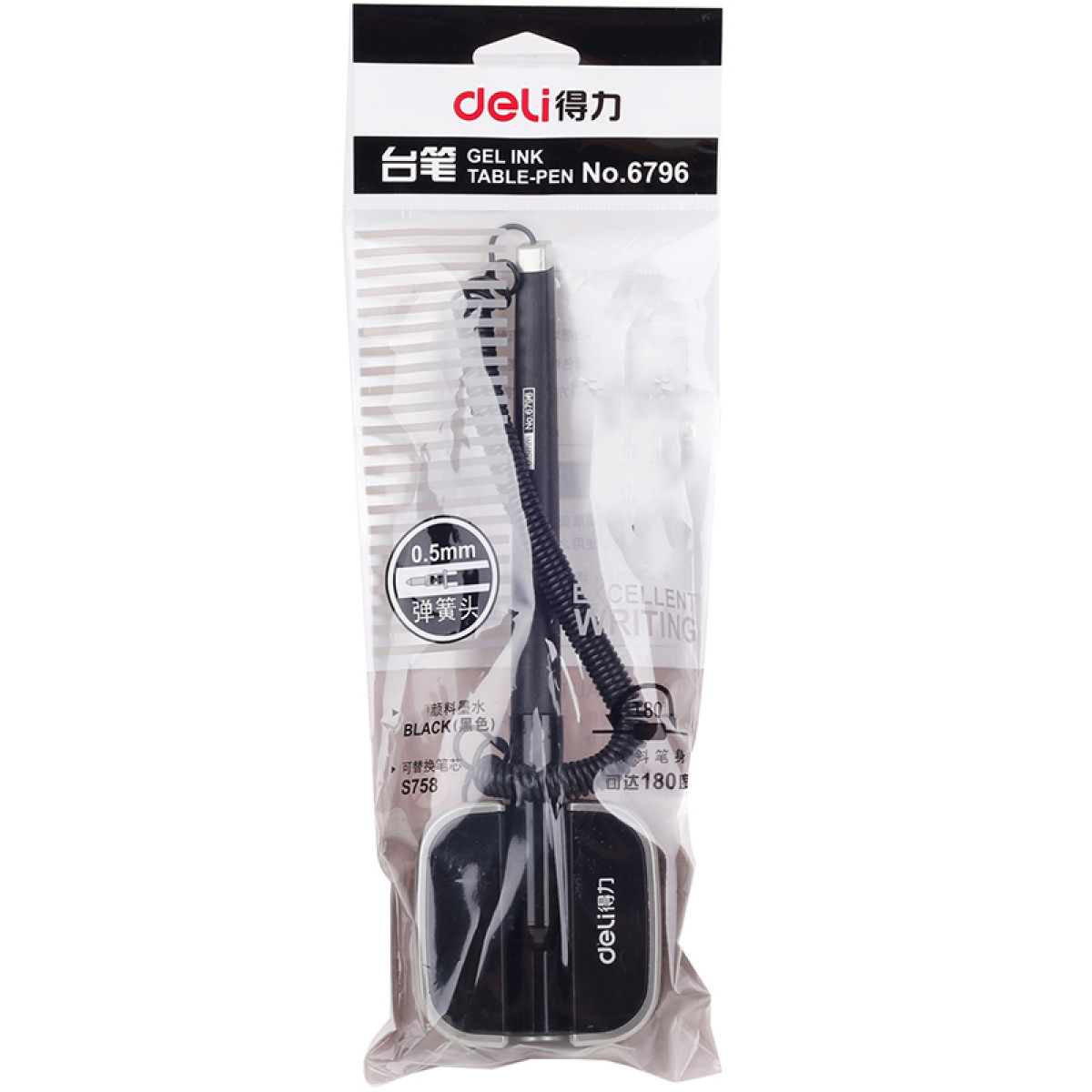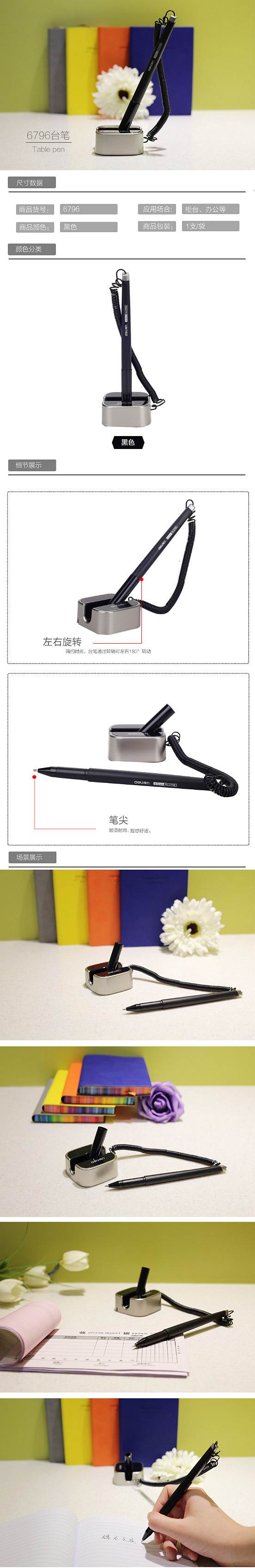 商品名称:得力(deli)6796 0.5mm商务办公桌面台笔签字笔 可粘贴台式中性笔单支 黑色 (单位:支)