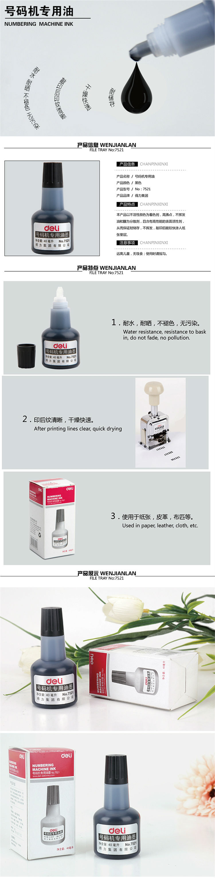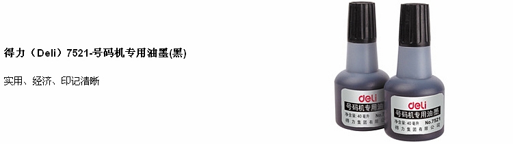 商品名称:得力(deli)7521号码机专用油墨 黑 (单位:瓶)