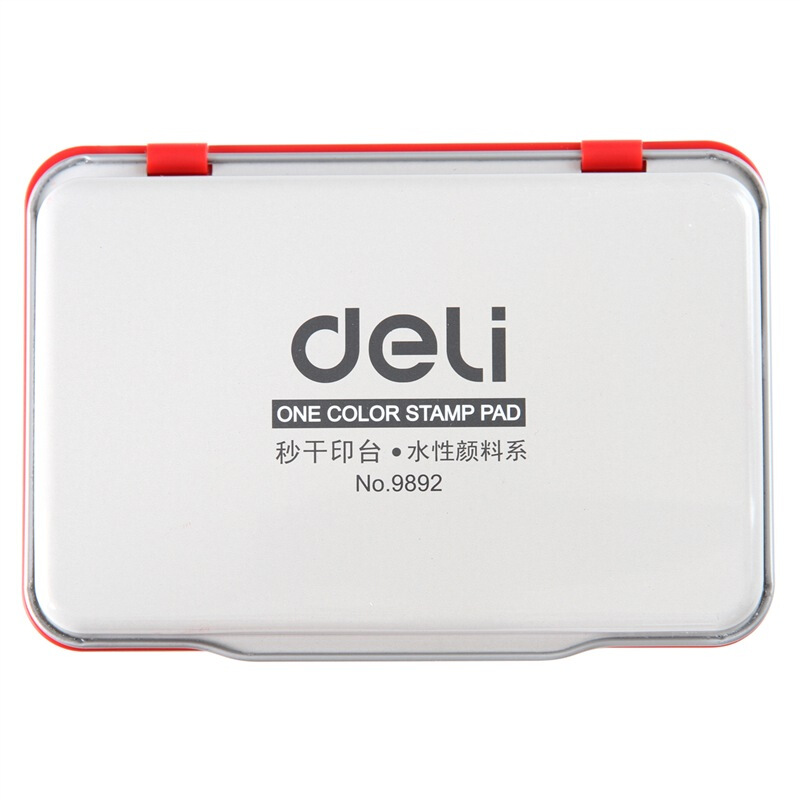得力(deli)金属方形 中号120*80mm秒干印台印泥 9892红色(单位:个)