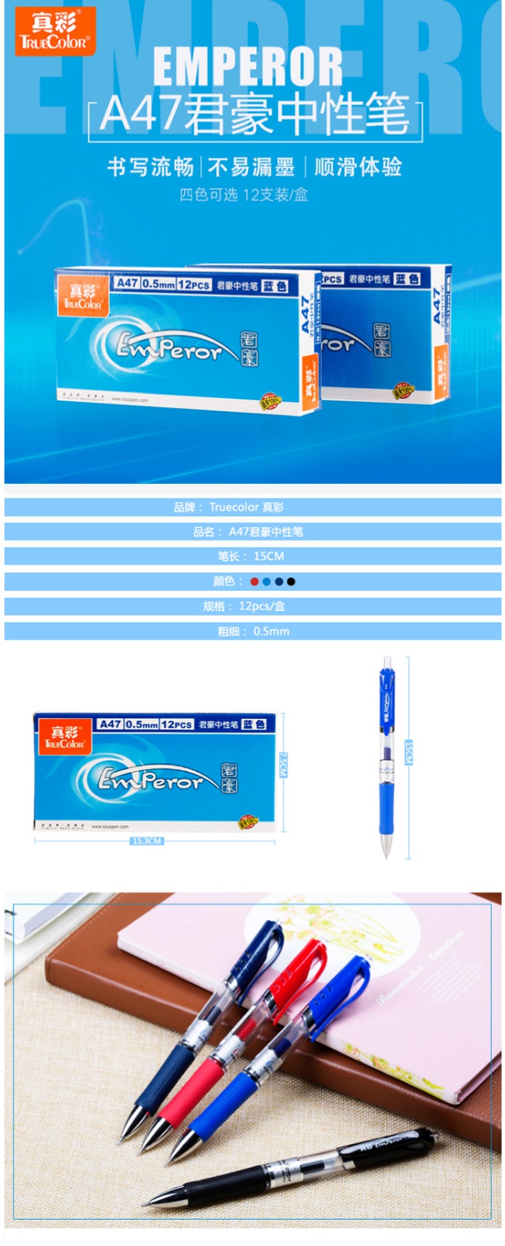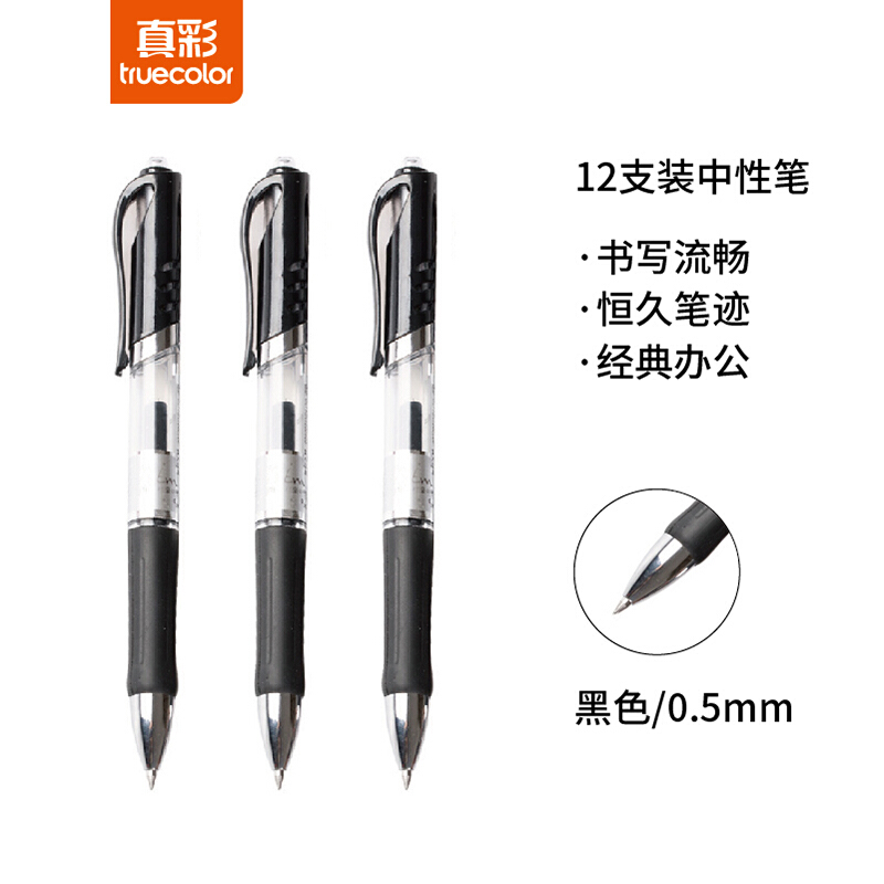 商品名称:真彩(TRUECOLOR) A47按动中性笔0.5mm签字笔黑色 12支/盒(单位:盒)