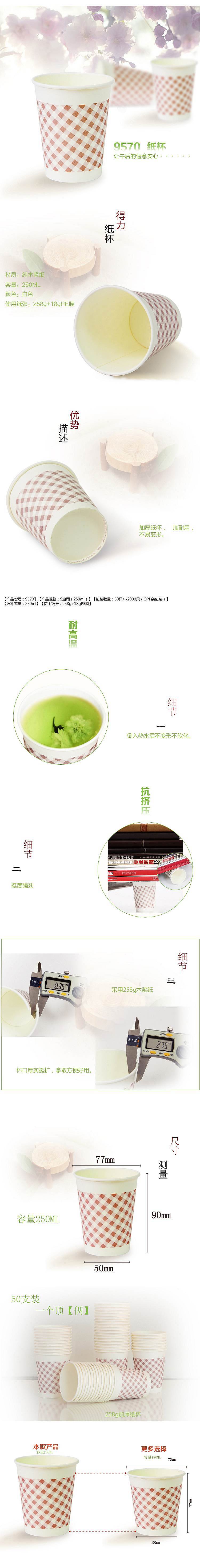 商品名称:得力 9570 加厚一次性纸杯 250ml 50只/包 (单位:包)