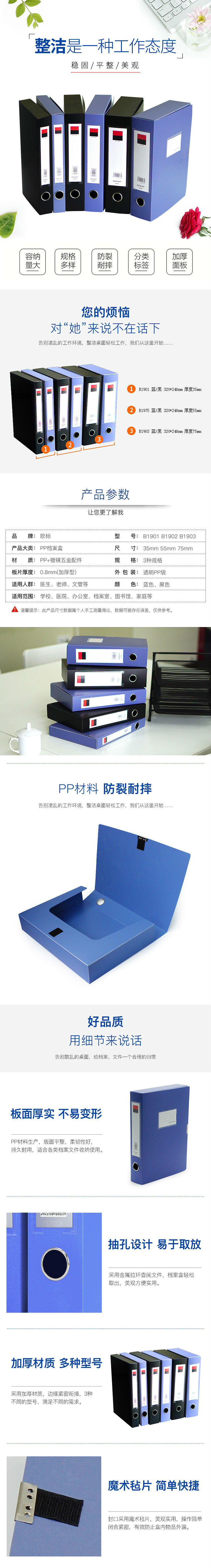 商品名称:欧标(MATE-IST)55mm档案盒加厚 粘扣文件盒 档案收纳盒 B1902蓝色 (单位:个)