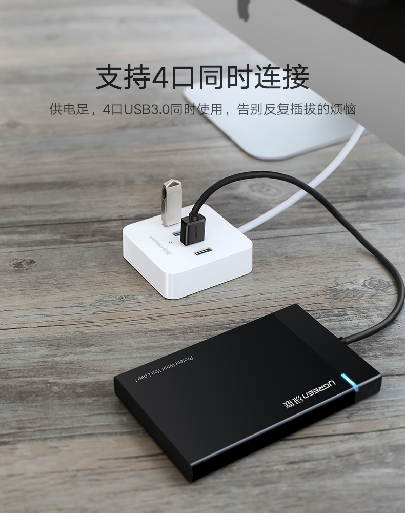 商品名称:绿联(UGREEN) USB3.0分线器 高速4口HUB扩展坞集线器 30221