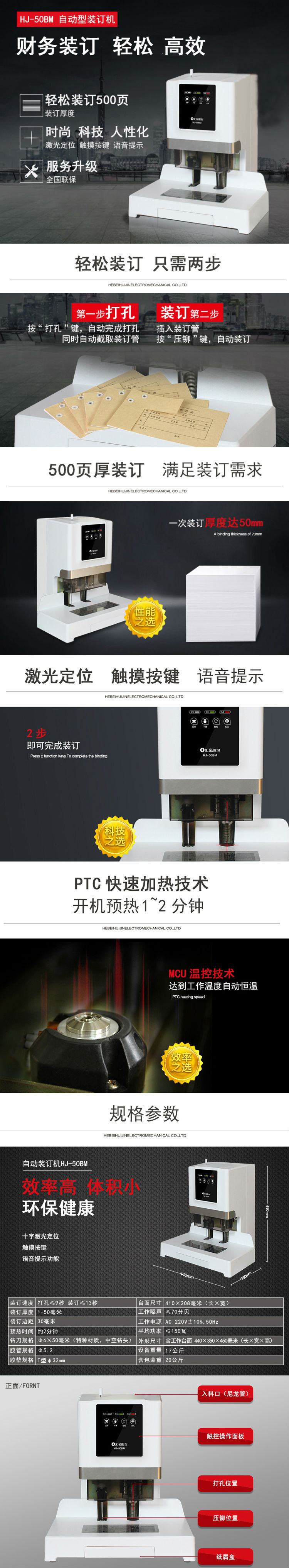 商品名称:汇金机电HJ-50BM自动财务凭证装订机 激光定位电动档案打孔机