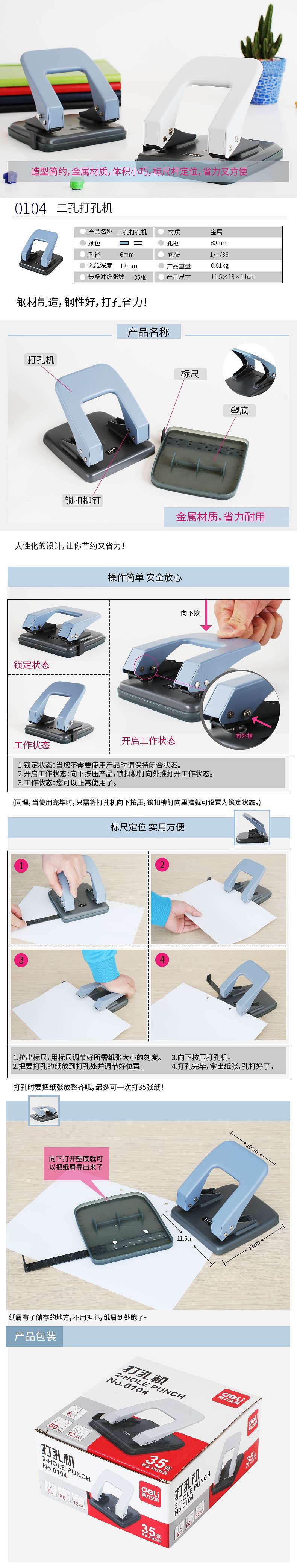 得力(deli) 0104两孔打孔器大号打孔机 带标尺)φ6mm可打35页 颜色随机(单位:台)