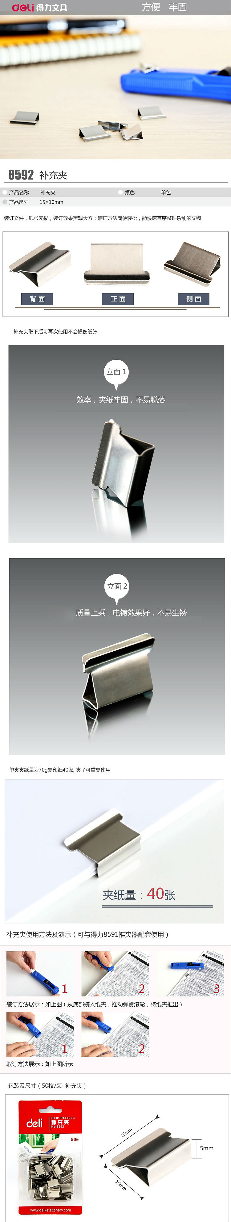 商品名称:得力(deli)8592补充夹银色(50枚/卡)