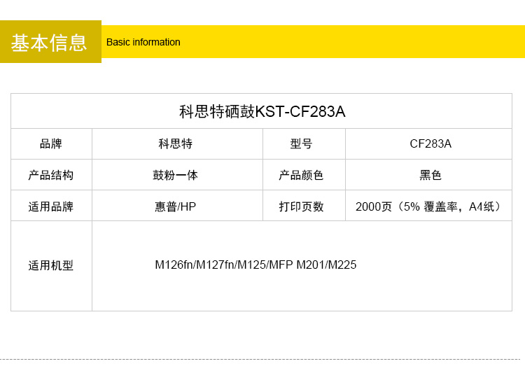 商品名称:科思特 CF283A硒鼓 适用惠普 M126fn/M127fn/M125/MFP M201/M225黑色 专业版