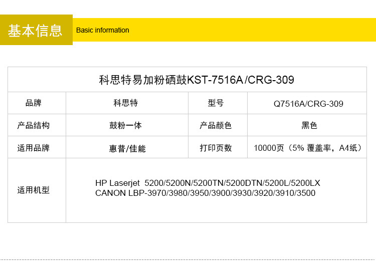 商品名称:科思特 Q7516A/CRG309(易加粉版)硒鼓 适用惠普 laserjet 5200/5200DN/5200DTN/Canon LBP3500/3900/39700黑色 专业版