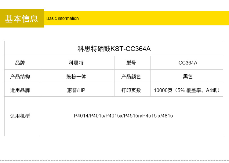 商品名称:科思特 CC364A硒鼓 适用惠普 P4014/P4015/P4015x/P4515n/P4515 x/4815黑色 专业版