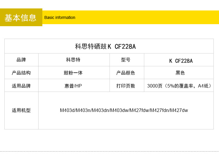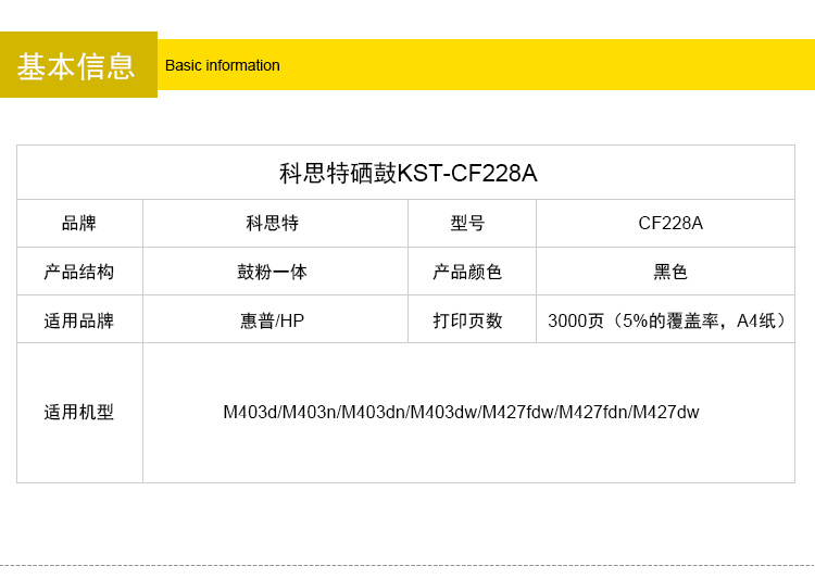 商品名称:科思特 CF228A(易加粉版) 硒鼓 适用惠普M403d/M403n/M403dn/M403dw/M427fdw/M427fdn/M427dw 黑色 专业版