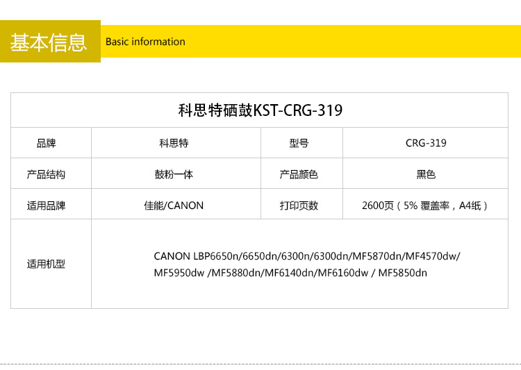 商品名称:科思特 CRG319硒鼓 适用佳能 LBP6650n/6650dn/6300n/6300dn/MF5870dn/MF4570dw/MF5950dw /MF5880dn/MF6140dn/MF6160dw / MF5850dn黑色 专业版
