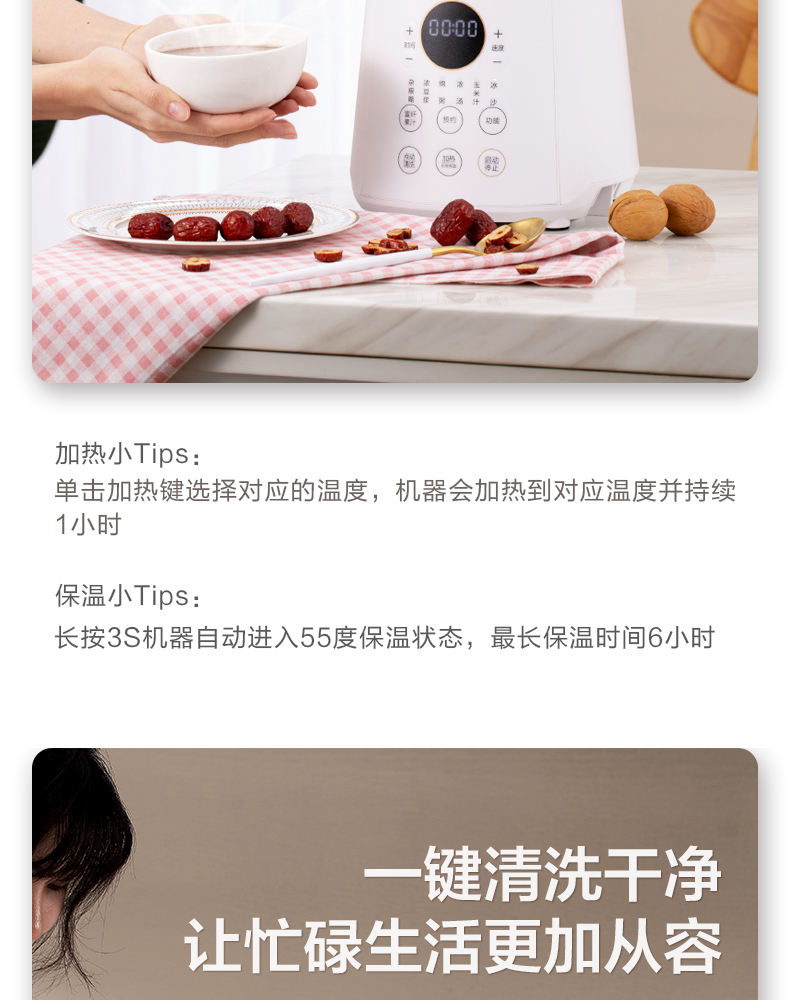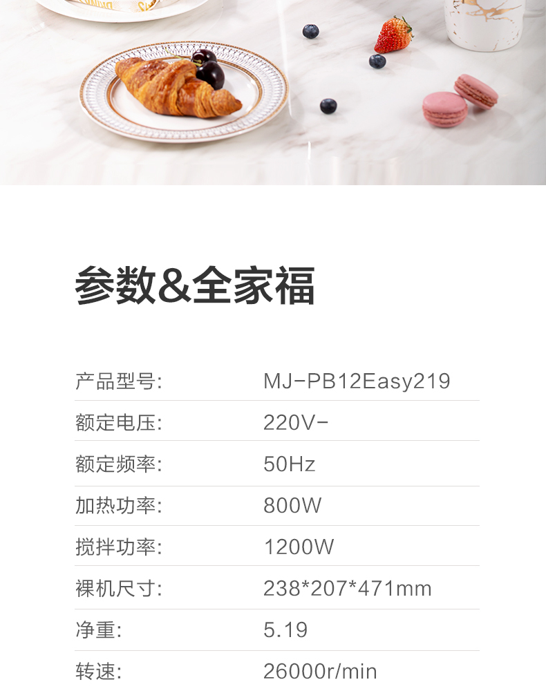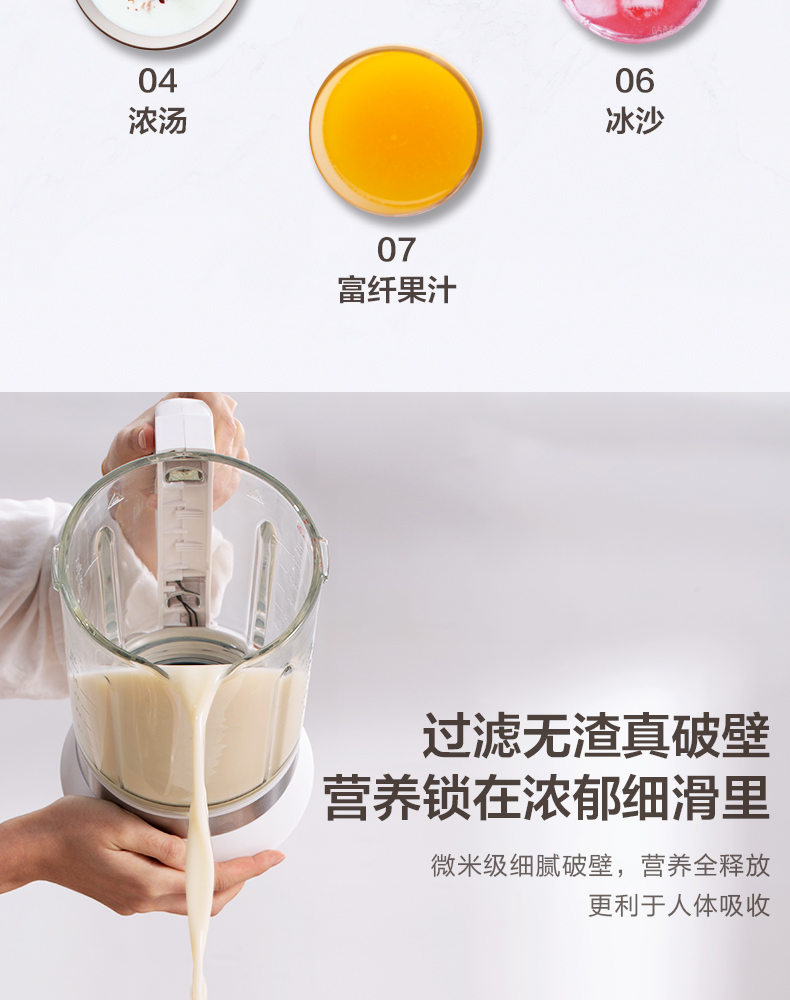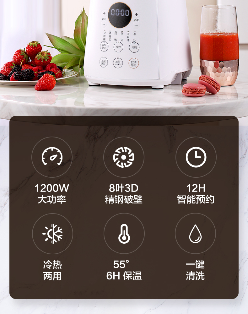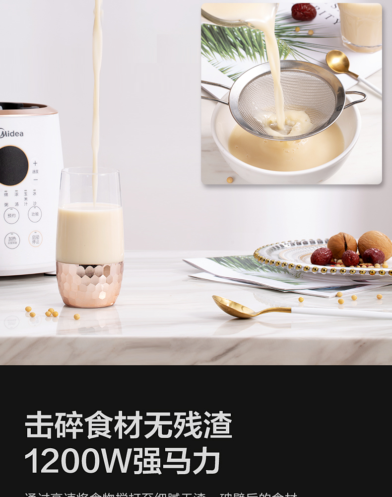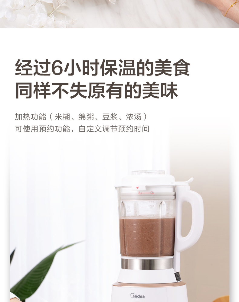 商品名称:美的养生破壁机 8叶3D精钢破壁过滤无渣 冷热两用 55°保温 MJ-PB12Easy219