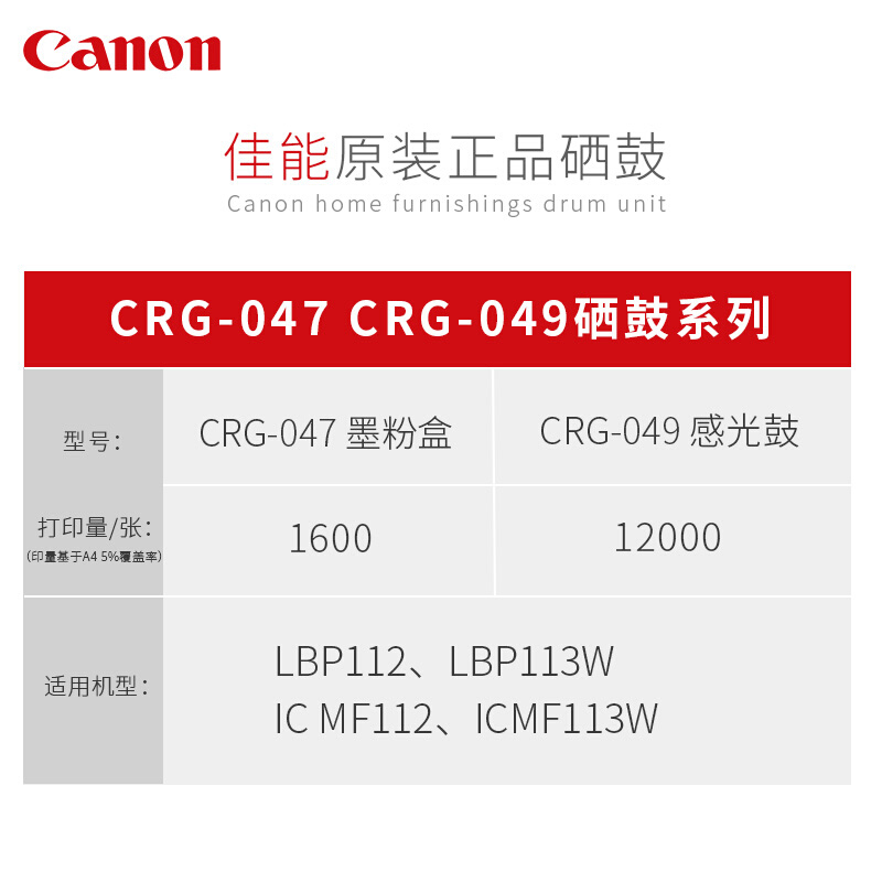商品名称:佳能(Canon) CRG-049 黑色感光鼓 适用机型 Canon LBP112/LBP113W/MF112/MF113W