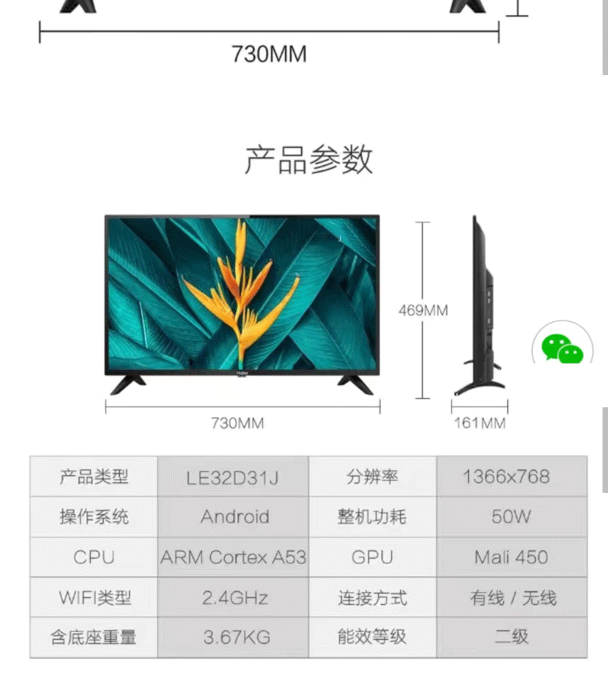 商品名称:电视 海尔 LE32D31J 液晶电视机 32寸 黑色