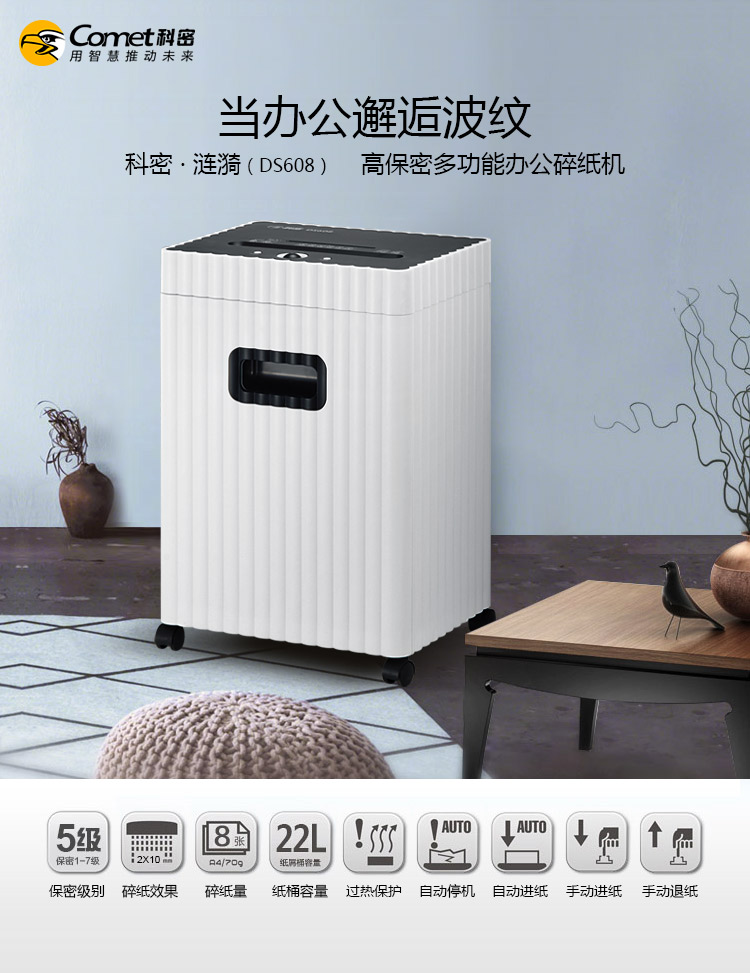 商品名称:科密(comet)碎纸机 德国5级高保密办公多功能碎纸机 文件粉碎机 碎卡/光盘DS608