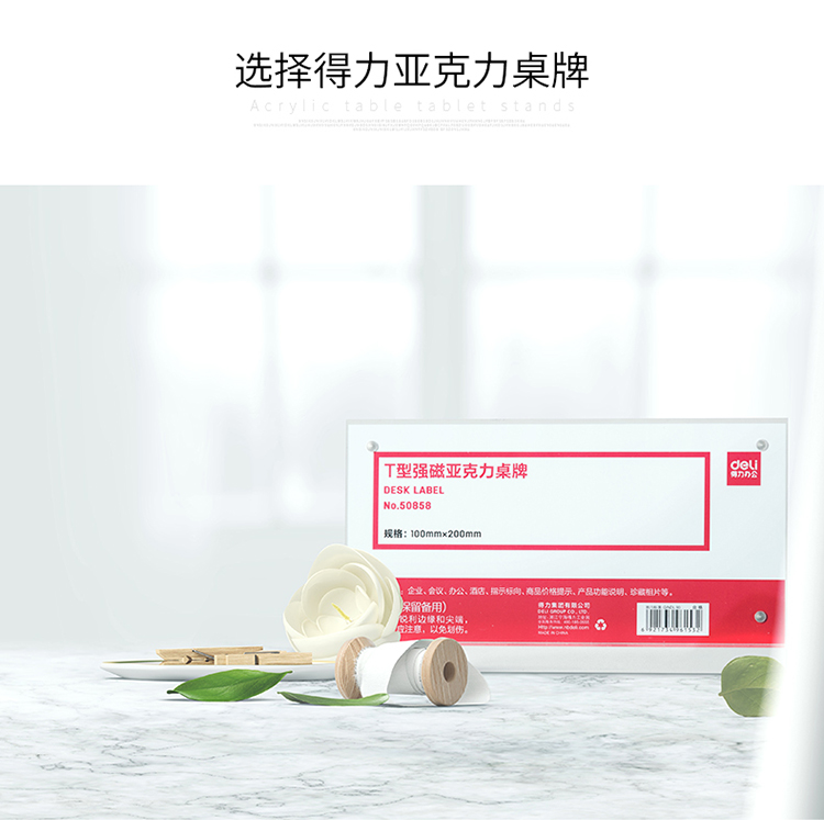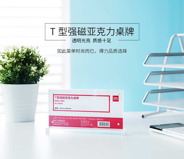 得力(deli)100*200mm T型强磁吸附亚克力桌牌/桌牌架/台卡 单面透明 50858