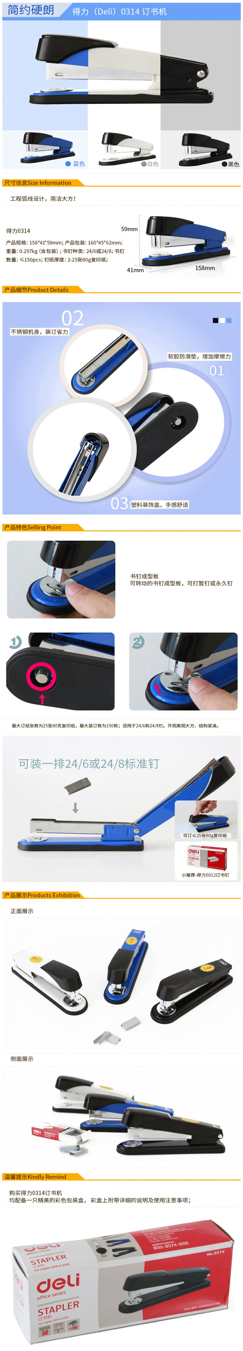商品名称:得力(deli)12#金属材质订书机 可装订50页 0314颜色随机