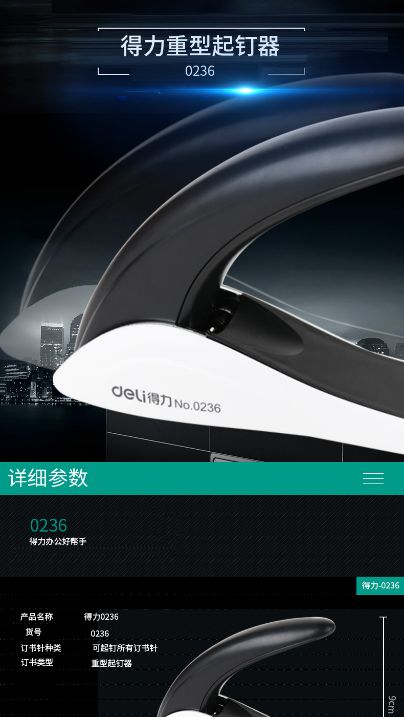 商品名称:得力(deli)0236 重型起钉器 订书机订书针拔起器