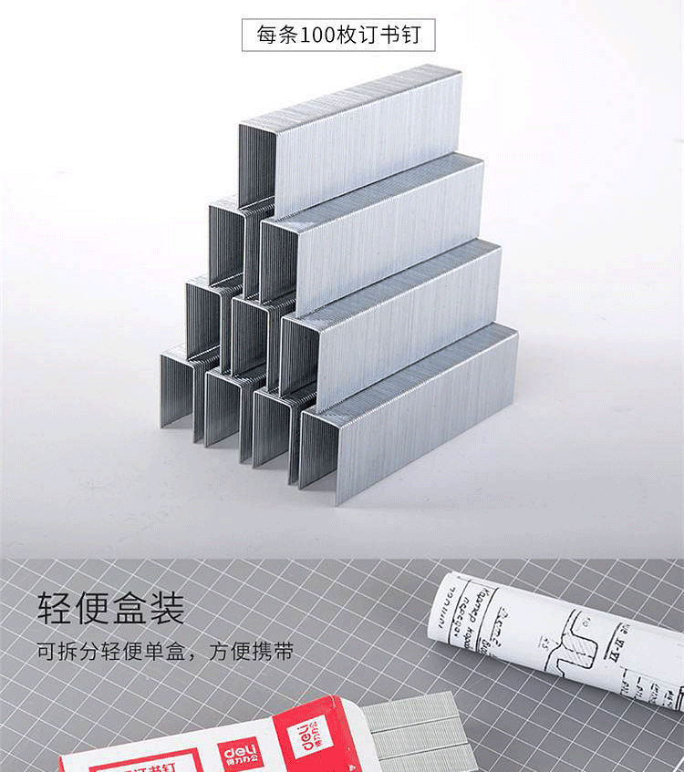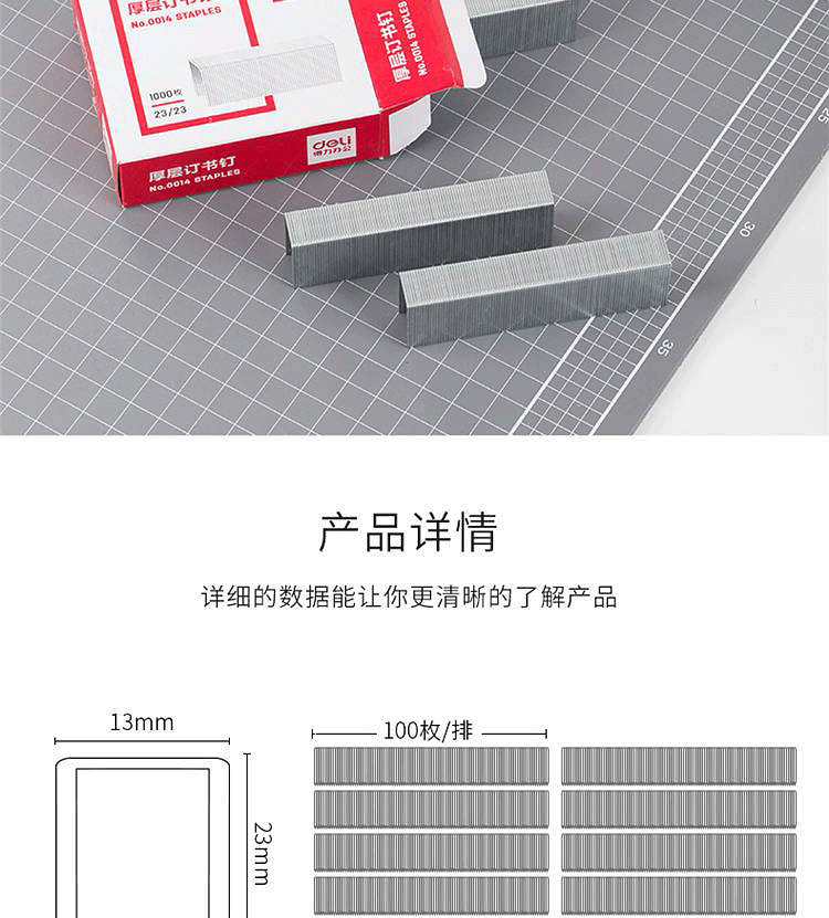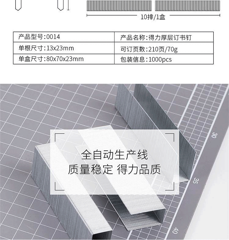 商品名称:得力(deli)0014订书针重型厚层大订书钉 23/23 可订210页 (单位:盒)