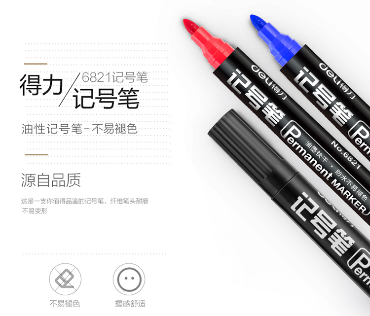 商品名称:得力(deli) 6821油性粗头记号笔 黑色大头笔 签名笔马克笔 黑色 10支/盒(单位:盒)