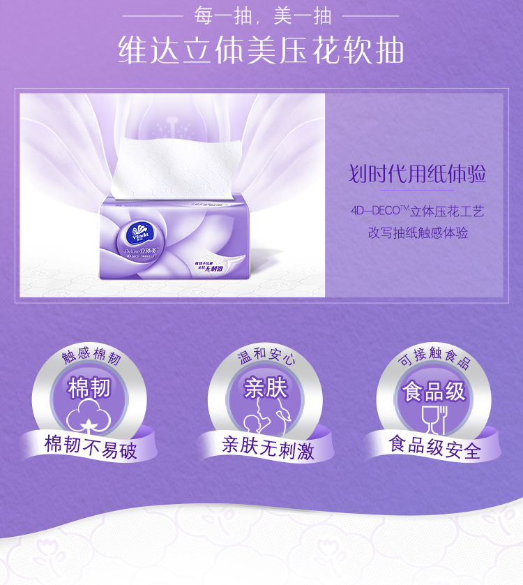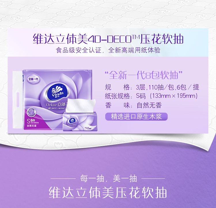 商品名称:维达立体美V2885 纸抽 餐巾纸 面巾纸 软包抽纸3层110抽 6包/提