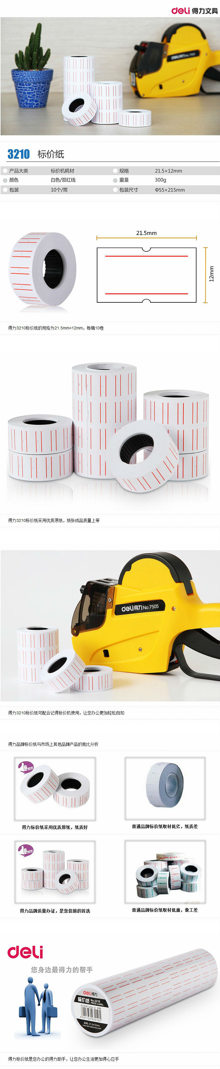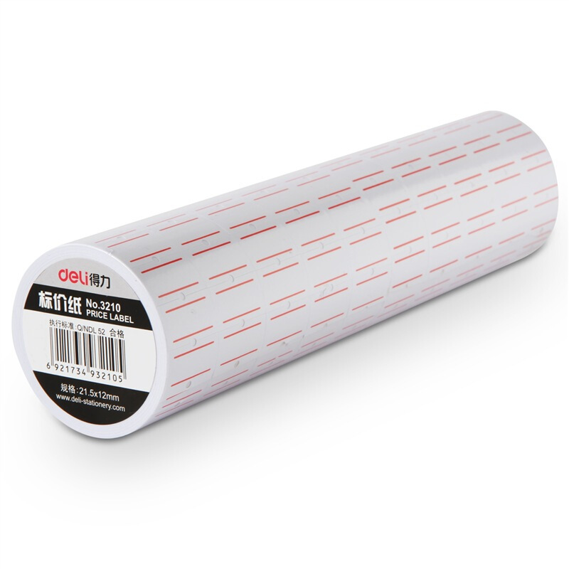 商品名称:得力(deli)21.5×12mm通用单排标价纸3210 10卷/筒