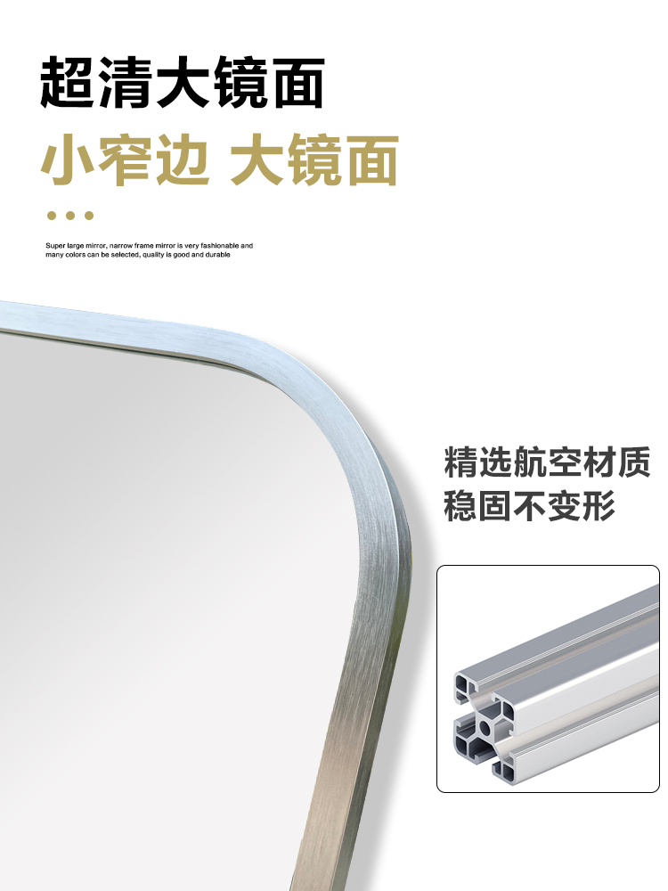 娜兰斯 银拉丝边圆角穿衣镜全身落地镜壁挂试衣镜20191229