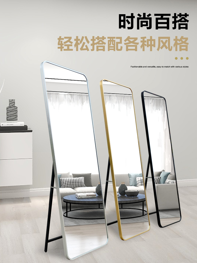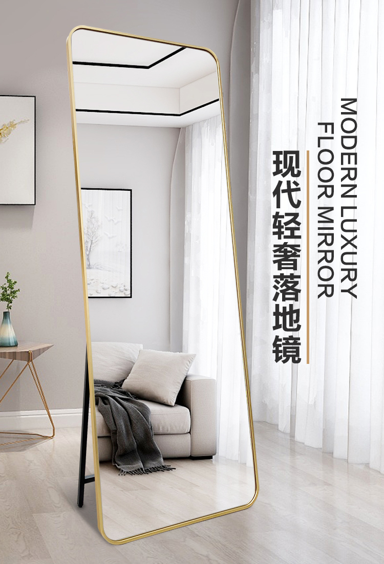 商品名称:娜兰斯 银拉丝边圆角穿衣镜全身落地镜壁挂试衣镜20191229