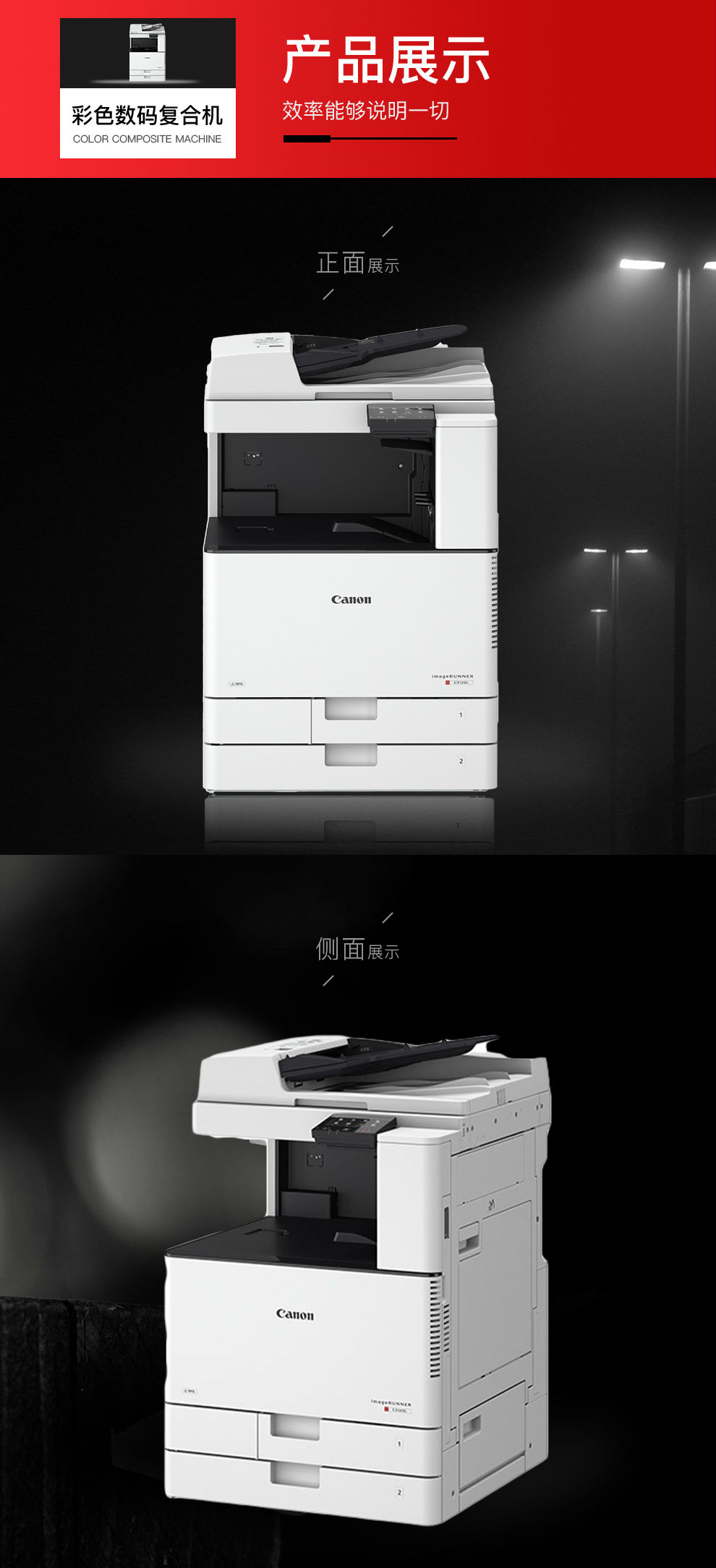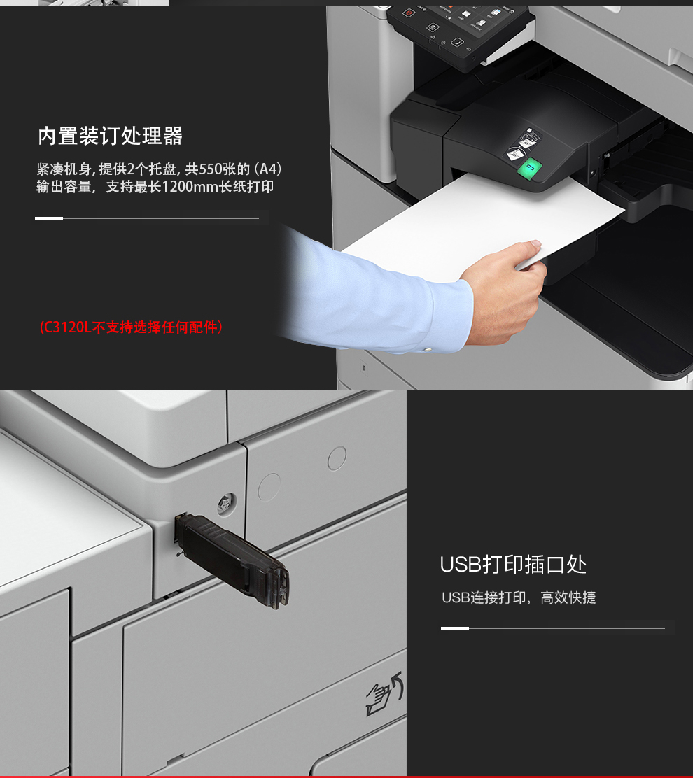 商品名称:佳能iR C3120L复印机A3彩色激光大型打印复印扫描数码复合机一体机 ( 自动输稿器+双纸盒+双面器+工作台)三年上门服务