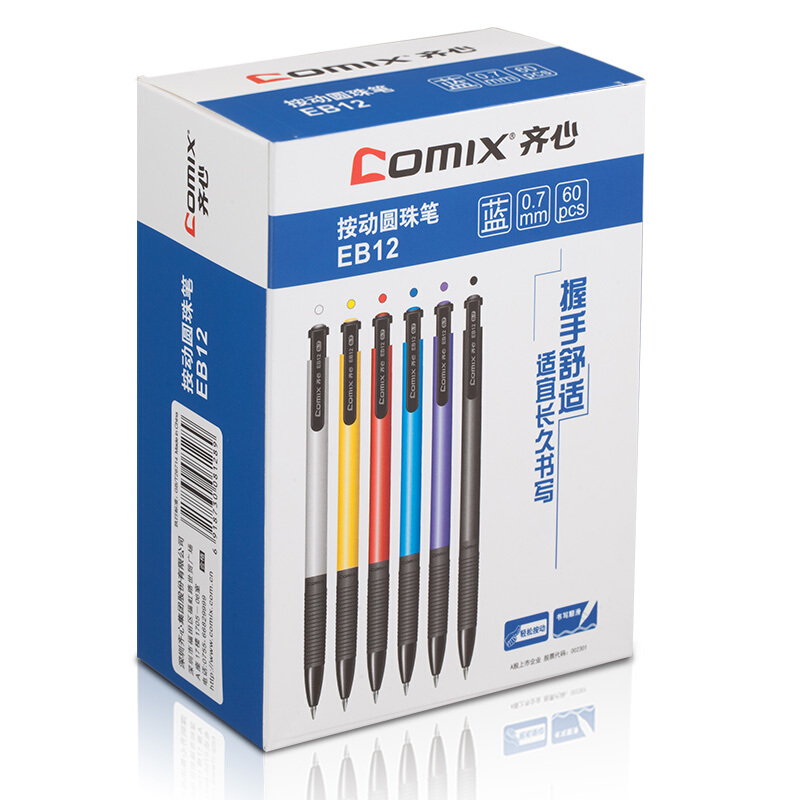 齐心(COMIX) 0.7mm按动圆珠笔 EB12蓝色 60支装(单位:盒)