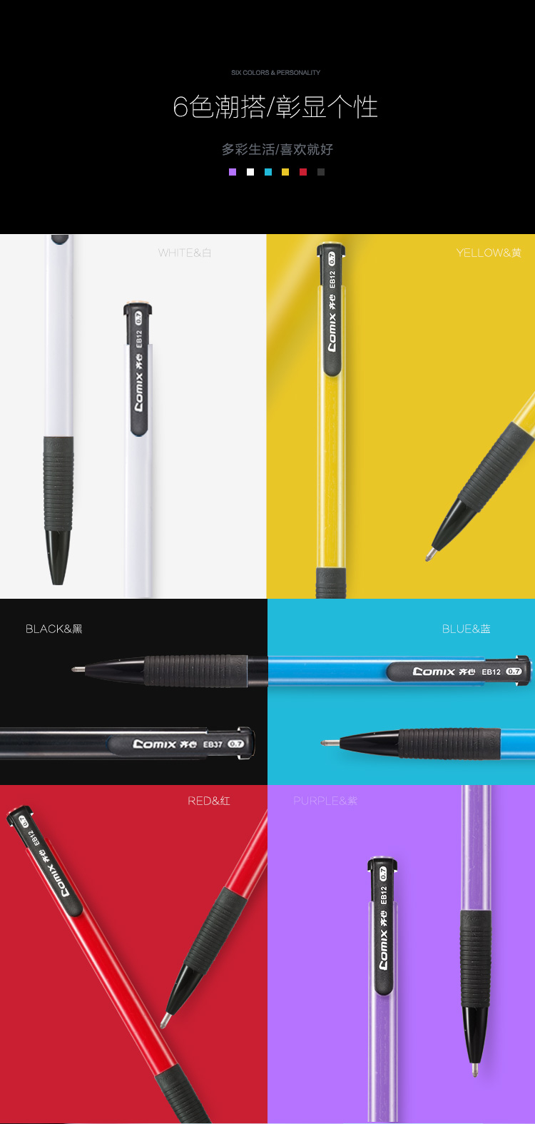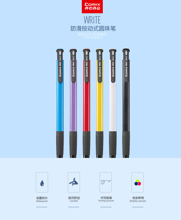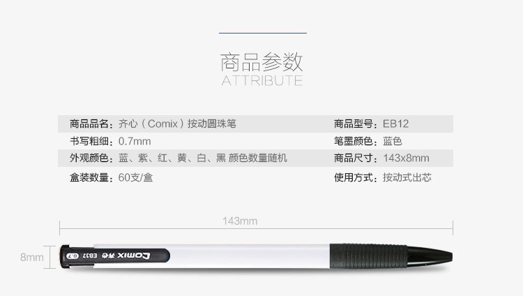商品名称:齐心(COMIX) 0.7mm按动圆珠笔 EB12蓝色 60支装(单位:盒)