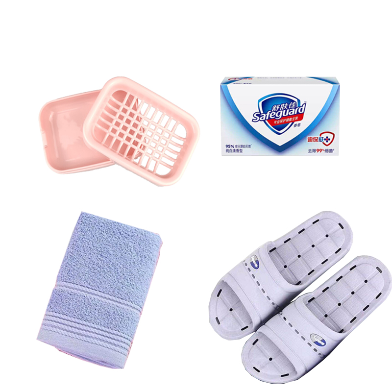 商品名称:洗漱包套装 十件套含:牙膏/牙刷/牙缸/洗发水/香皂/香皂盒/毛巾/拖鞋/洗漱包/床单(套内单品款式随机)