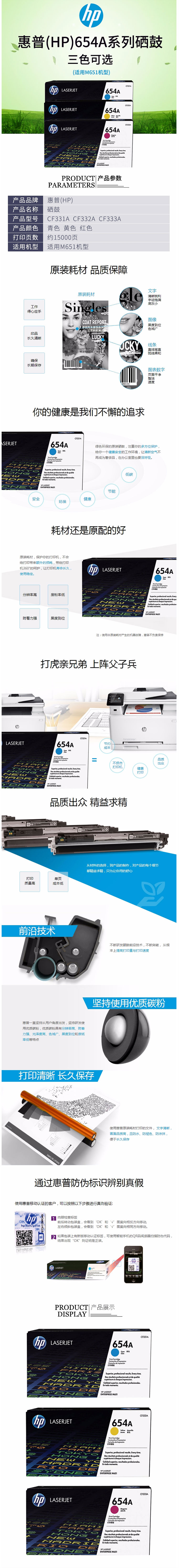 商品名称:惠普(HP)CF332A(654A)黄色原装硒鼓 (适用于:M651系列打印机)
