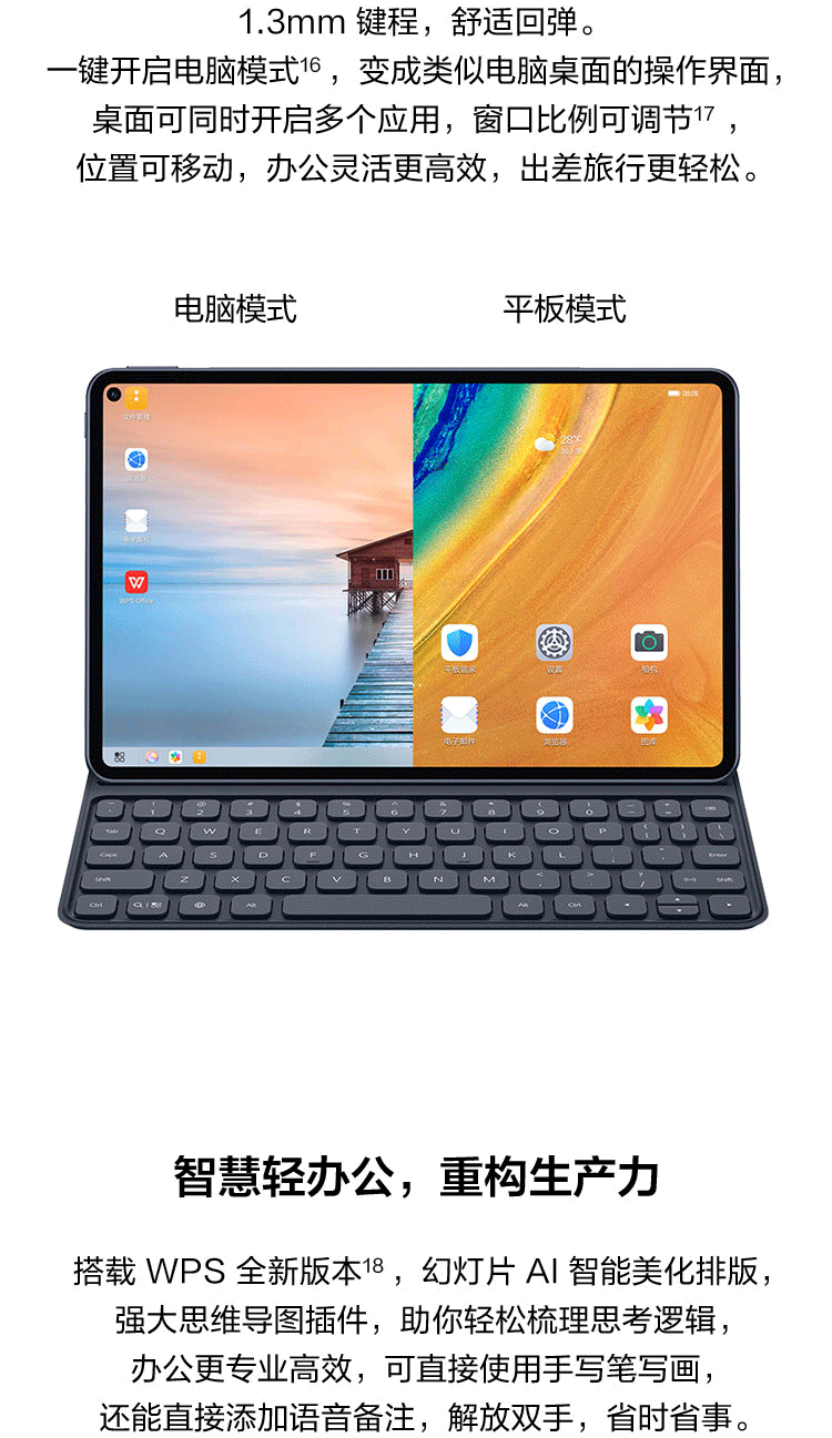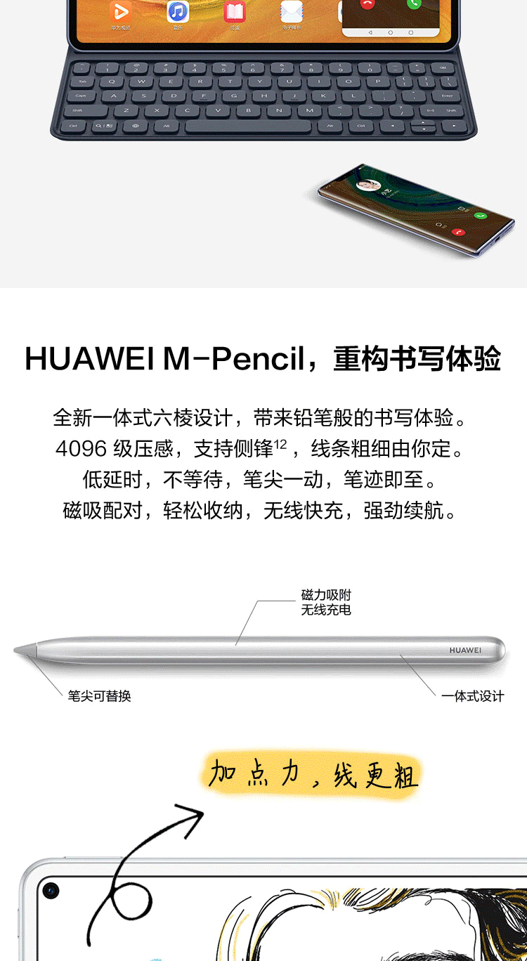 商品名称:华为MatePad Pro 【键盘+笔套装】10.8英寸麒麟990全面屏平板电脑8+512G全网通(青山黛)