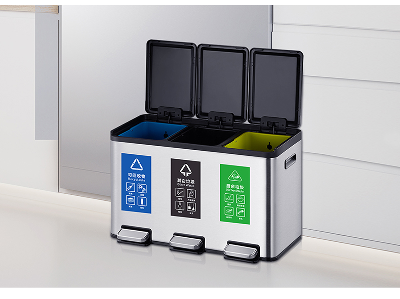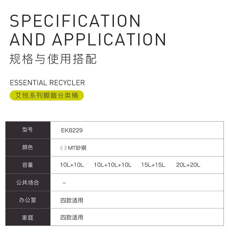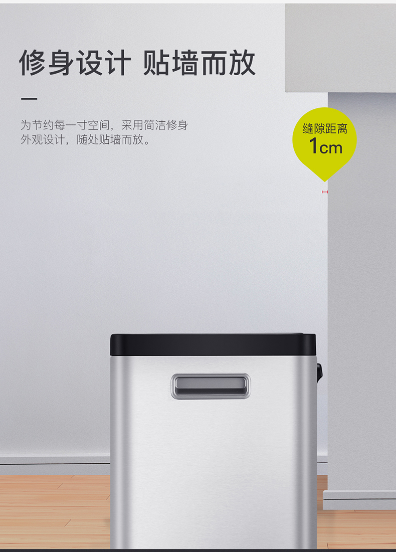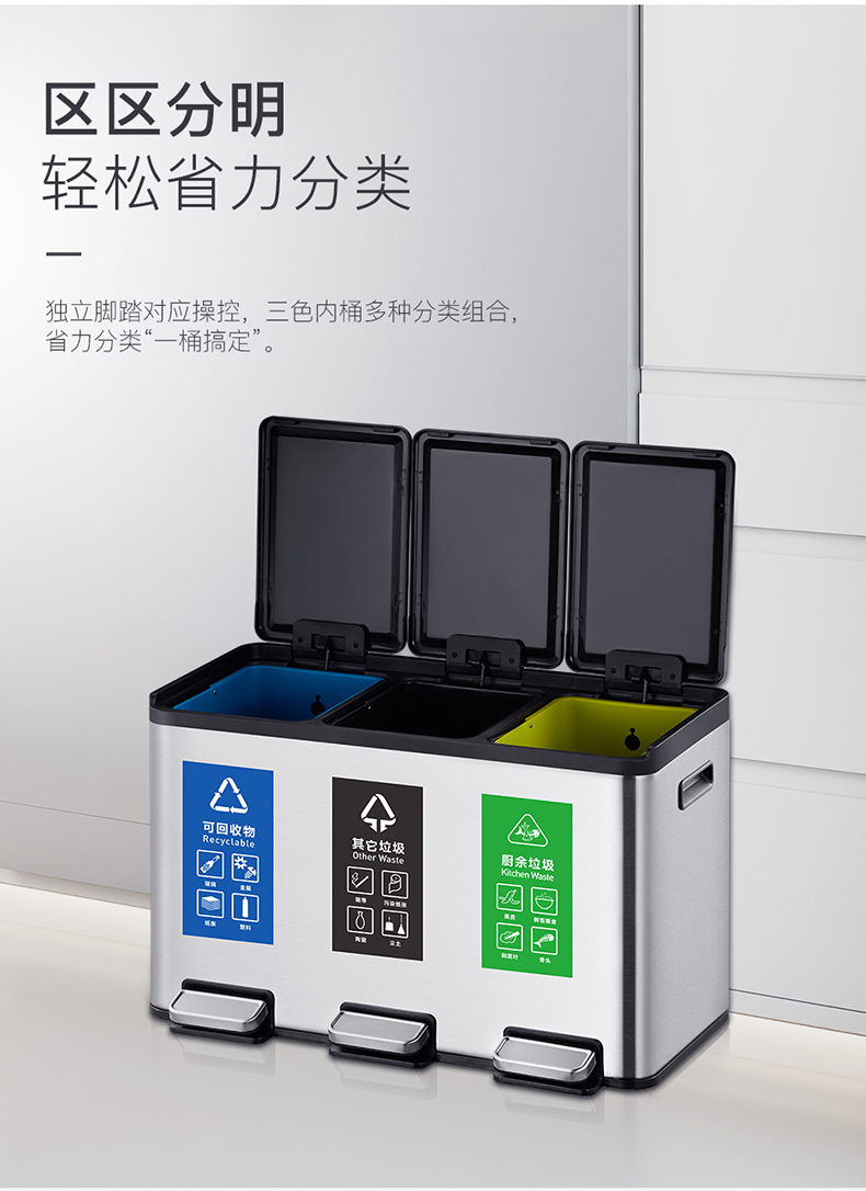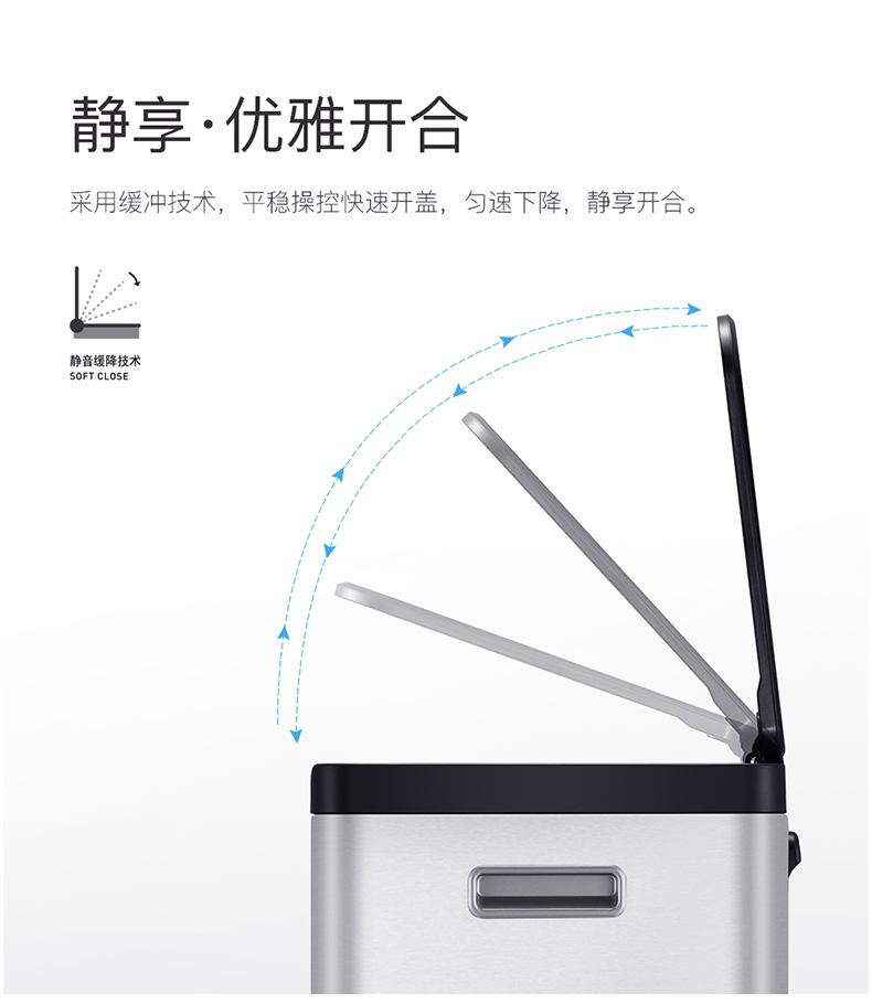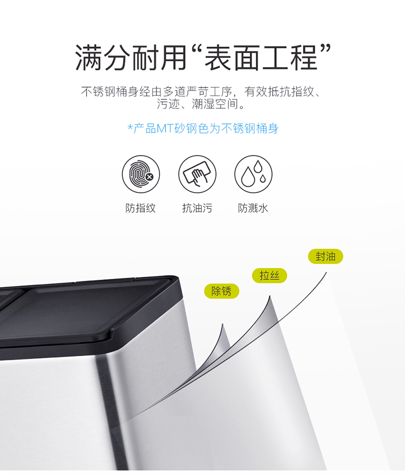 商品名称:EKO分类垃圾桶 干湿分离大号不锈钢独立脚踏式带盖桶 EK8229MT-15L+15L