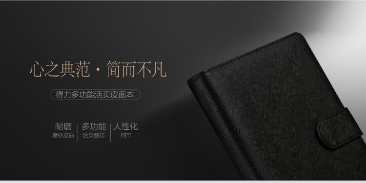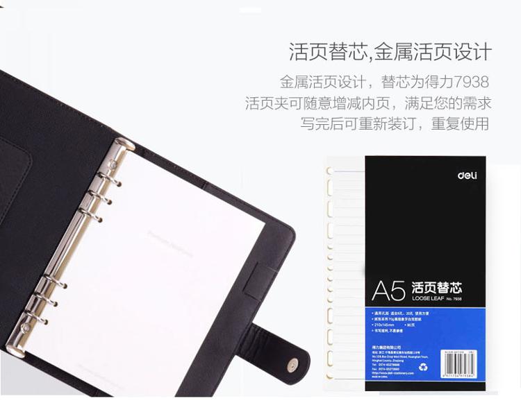 得力(deli)25K100张商务活页笔记本子 A5工作记事本皮面本 黑色3151