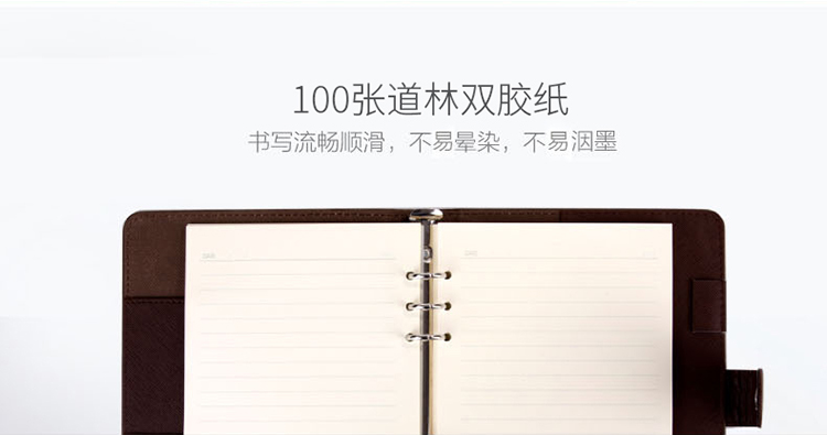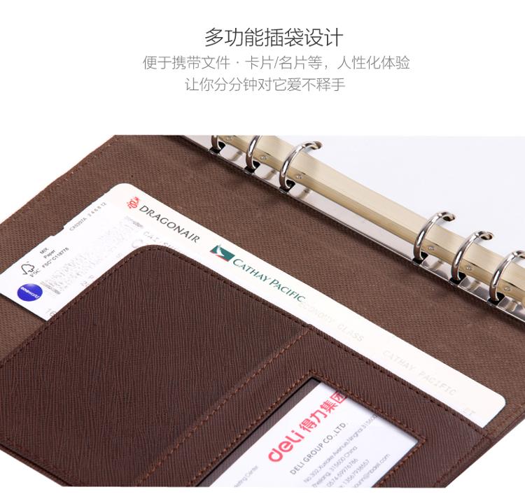 商品名称:得力(deli)25K100张商务活页笔记本子 A5工作记事本皮面本 棕色3151