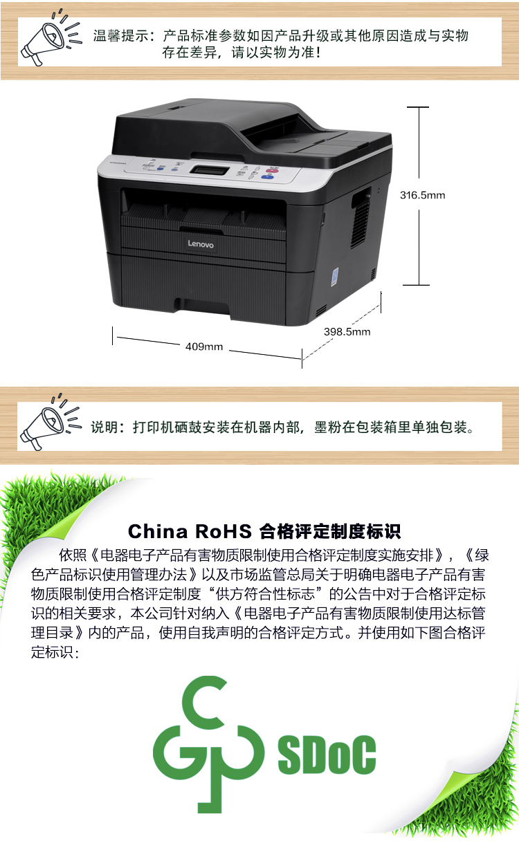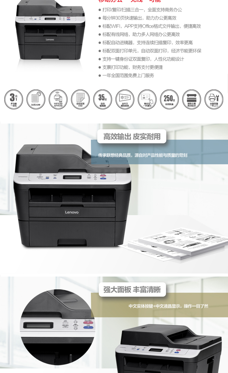 商品名称:联想(Lenovo)M7625DWA 黑白激光无线WiFi打印多功能一体机