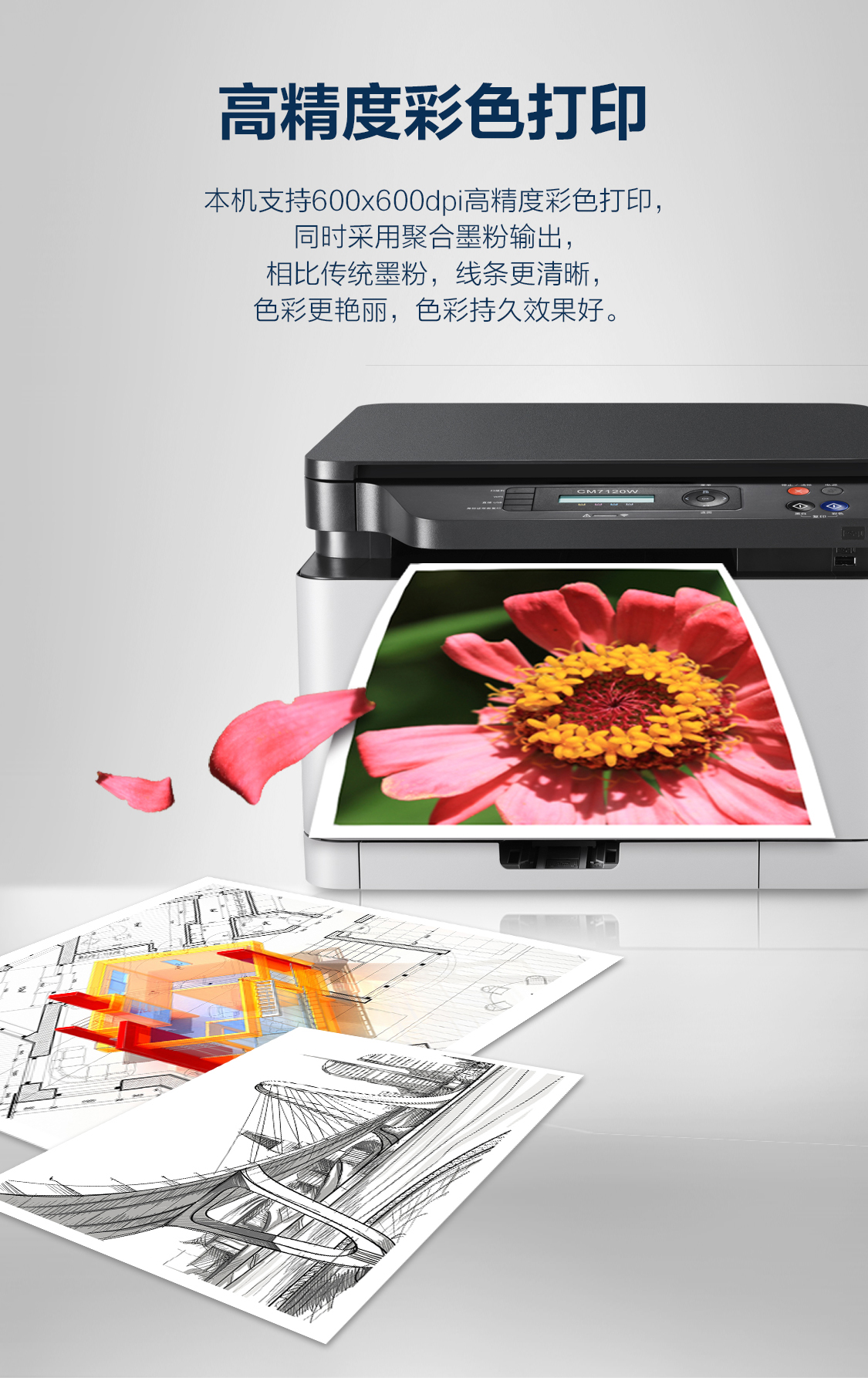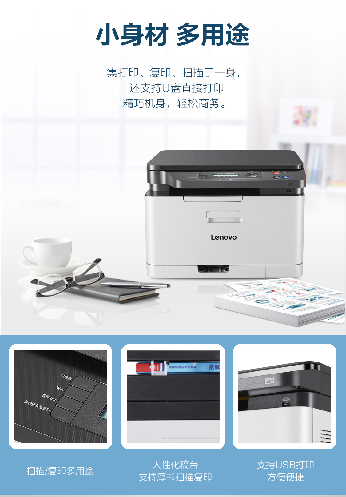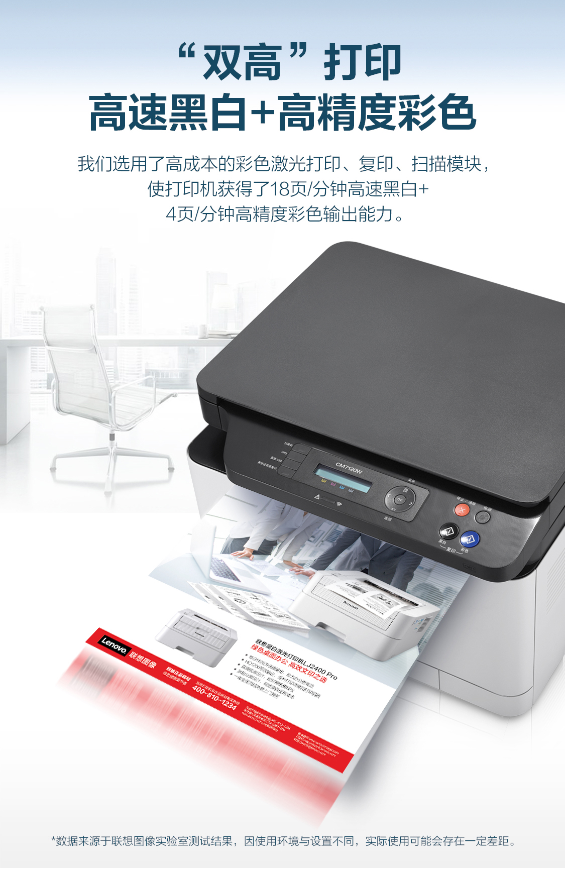 联想(Lenovo)CM7120W 彩色激光有线网络+无线WiFi打印多功能一体机