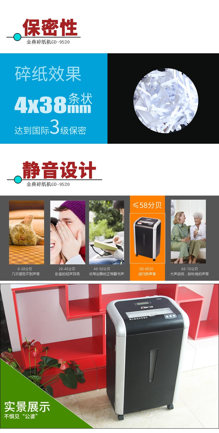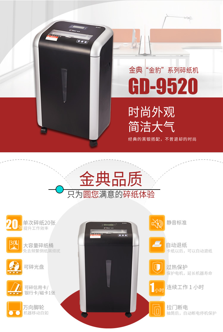 商品名称:金典(GOLDEN)GD-9520碎纸机 长时间文件粉碎机
