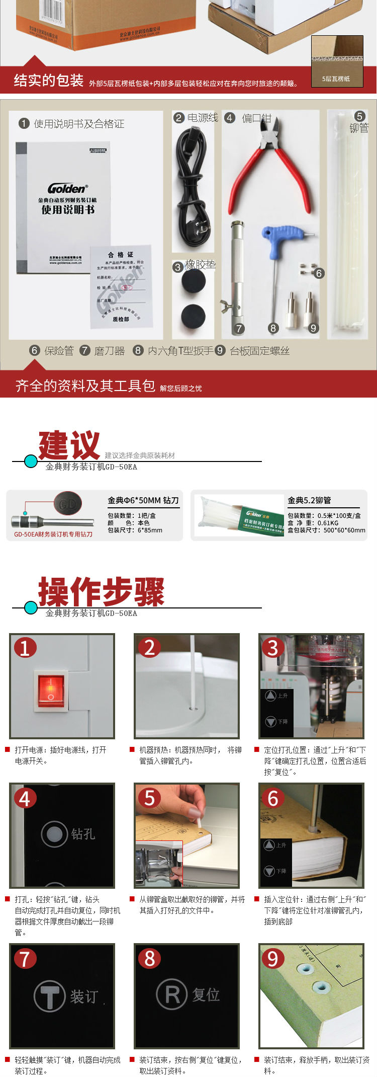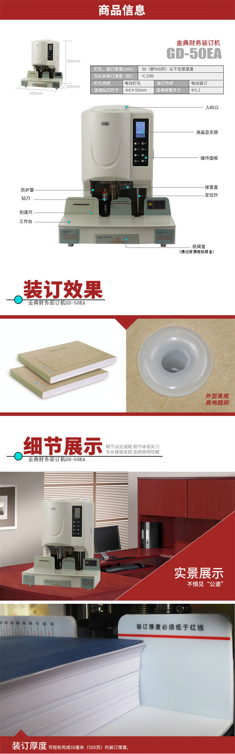 商品名称:金典(GOLDEN)GD-50EA装订机财务凭证装订机自动打孔机会计档案电动装订机