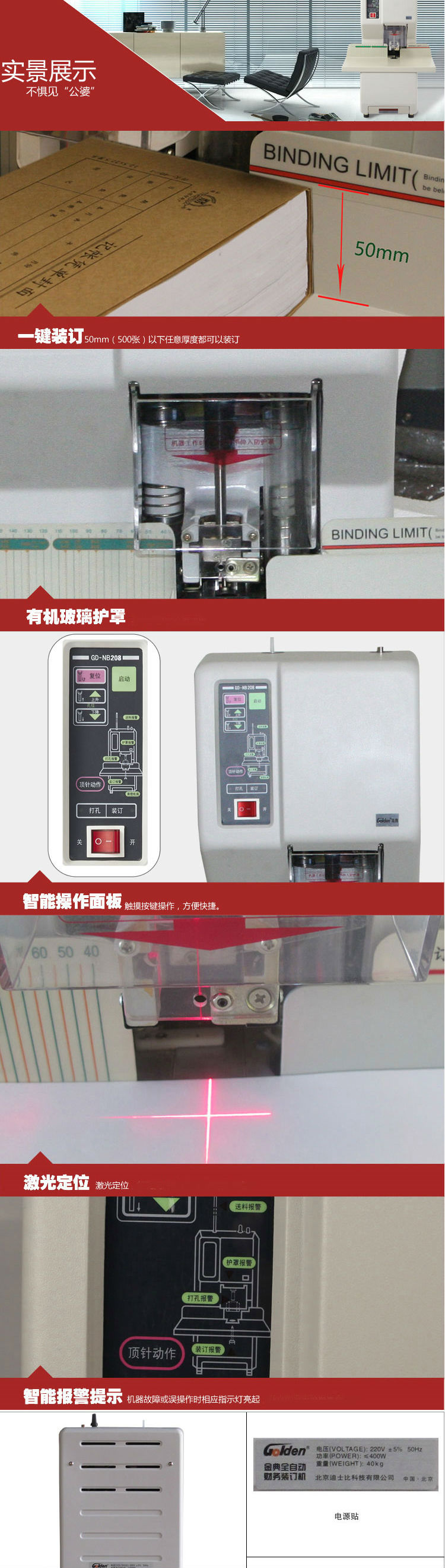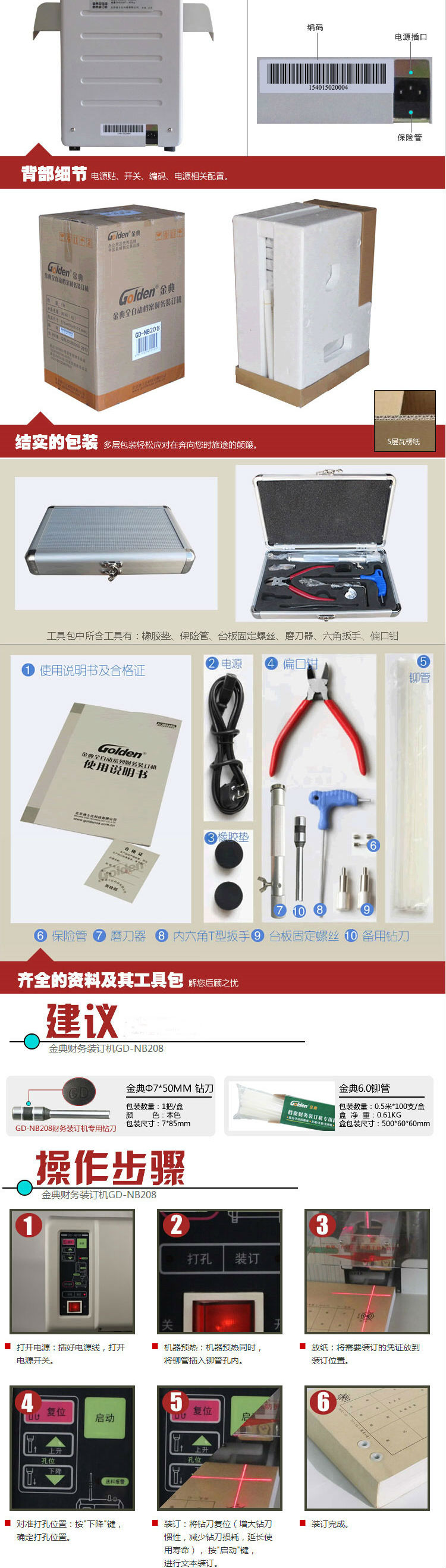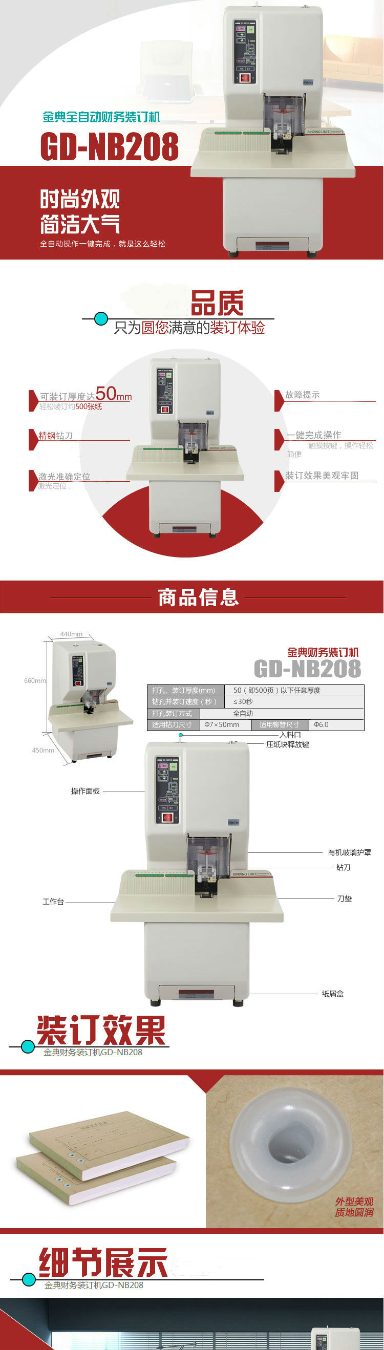 商品名称:金典(GOLDEN)GD-NB208装订机财务凭证装订机 全自动打孔装订 无需人工一键装订