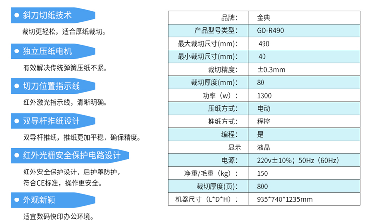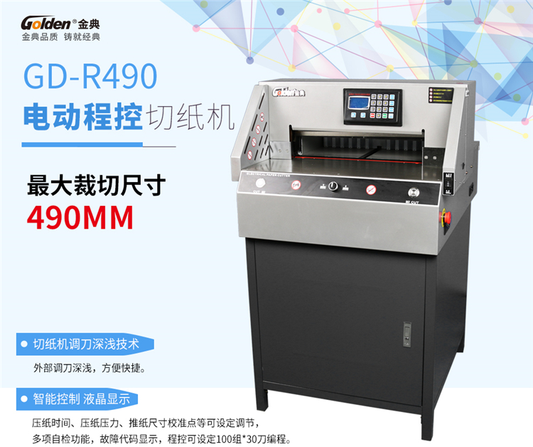 商品名称:金典(GOLDEN)GD-R490切纸机裁纸机厚层切纸刀裁纸刀 A3+8厘米+程控