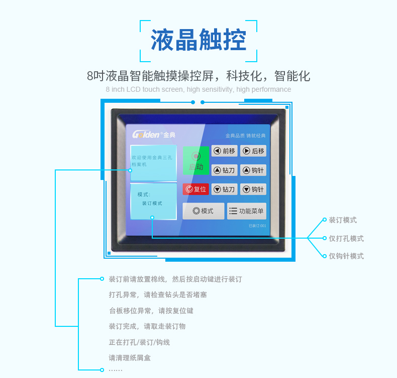 商品名称:金典(GOLDEN)GD-NB5808档案装订机 三孔装订机 线装机 全自动打孔装订