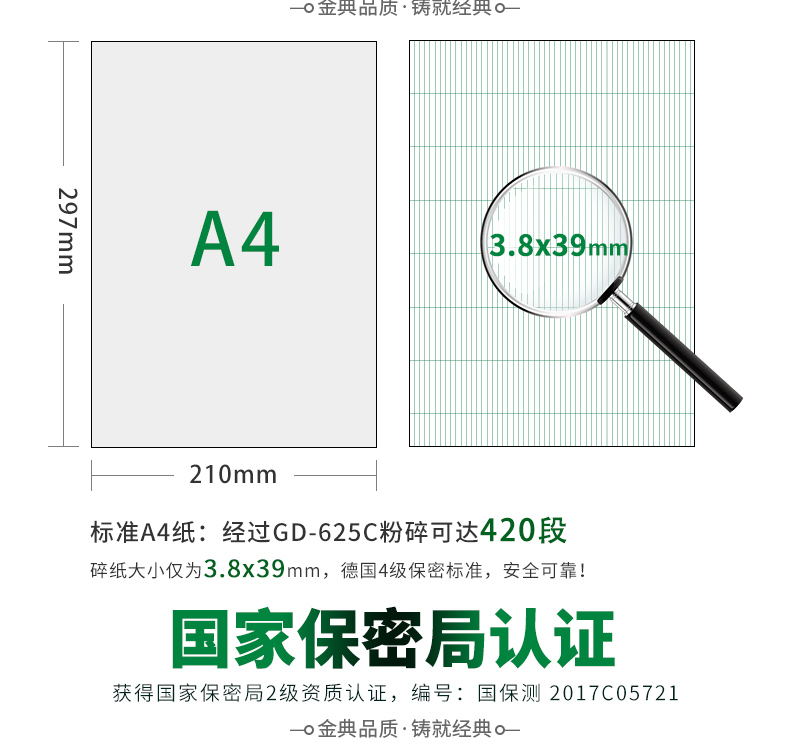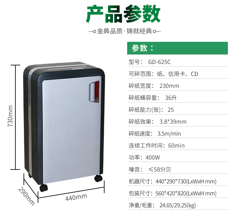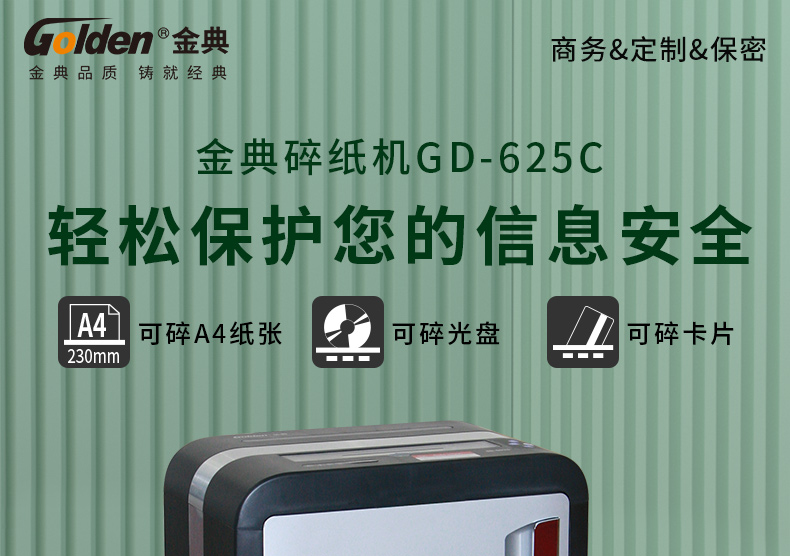 商品名称:金典(GOLDEN)GD-625C碎纸机 商务办公碎纸机 条状家用大功率 静音碎纸机