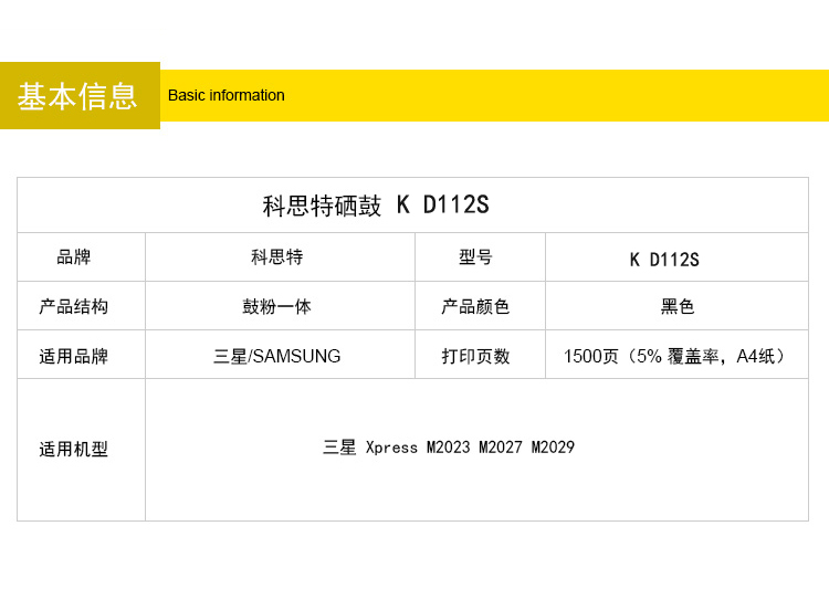 商品名称:科思特 D112S硒鼓 适用三星 Xpress M2023 M2029黑色 专业版
