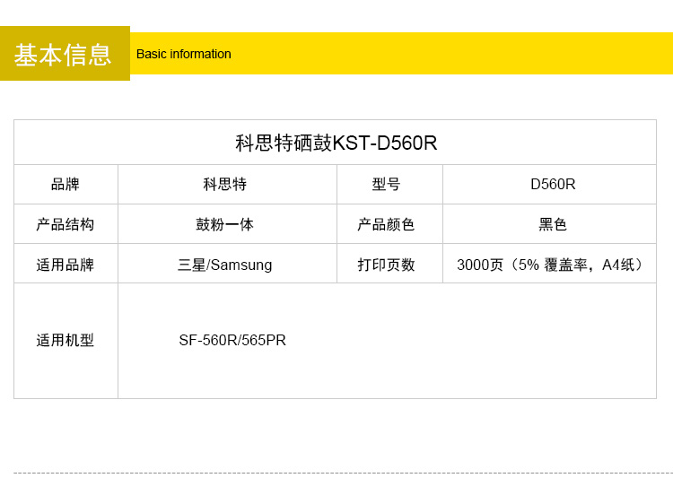商品名称:科思特 560R硒鼓 适用三星 SF-560R/565PR黑色 专业版
